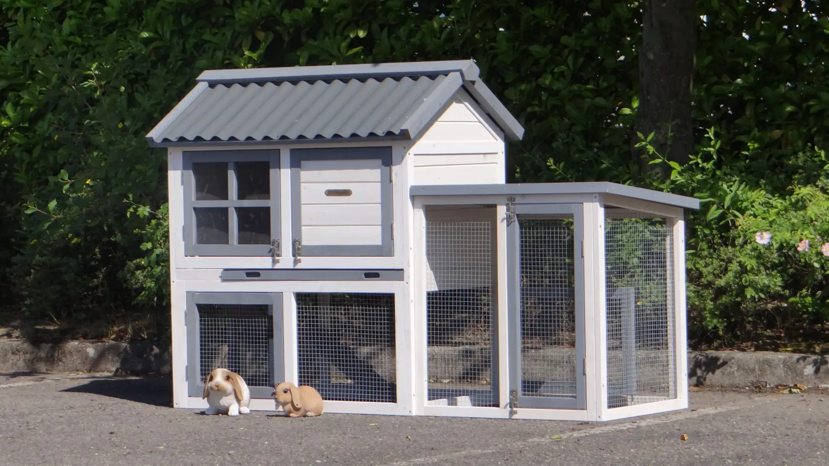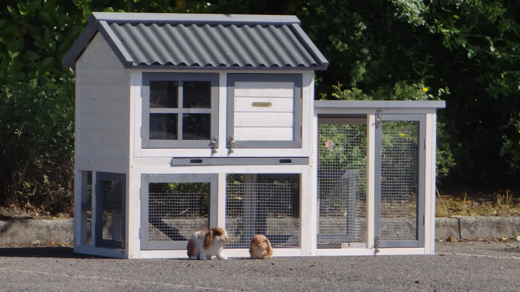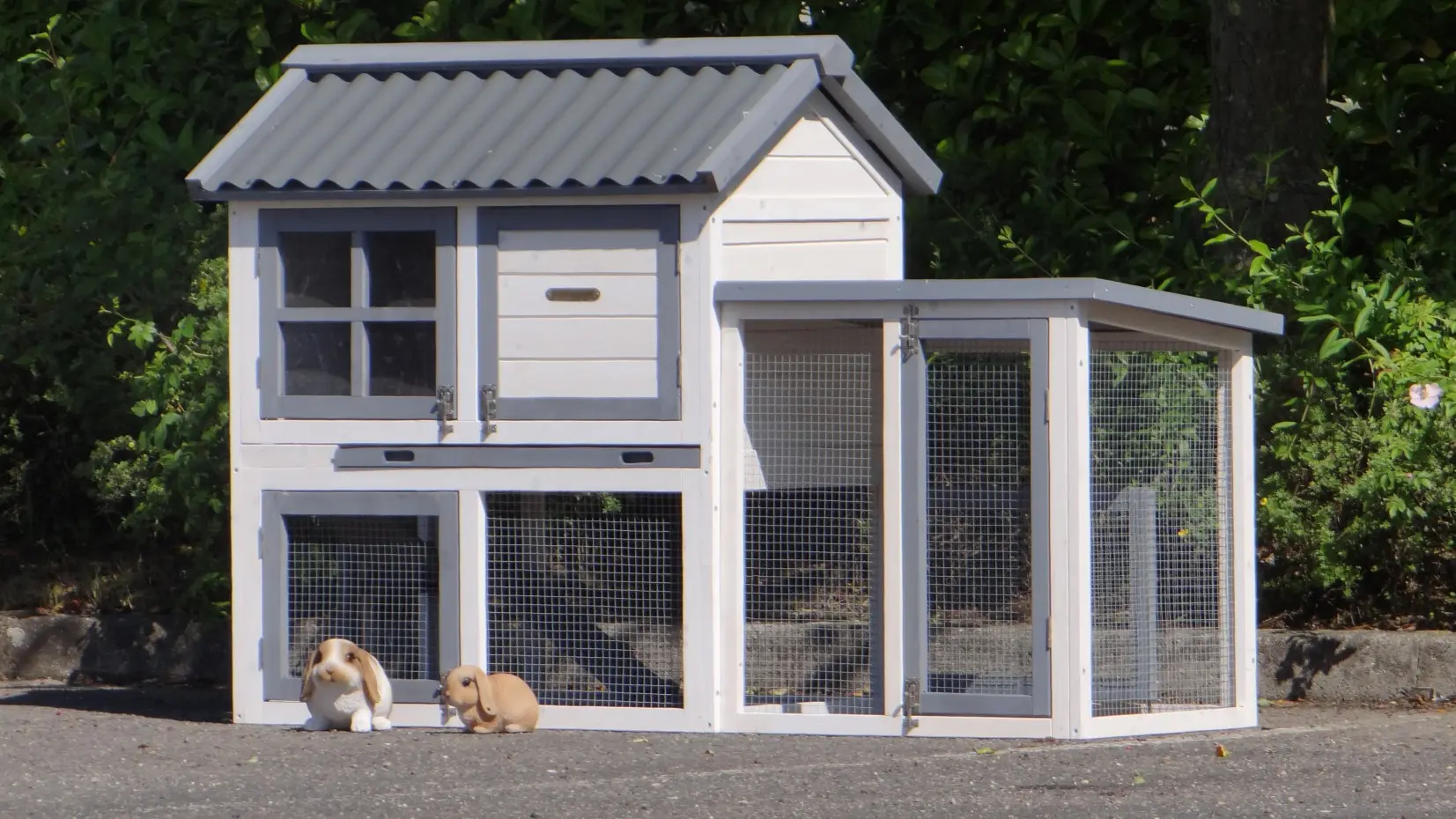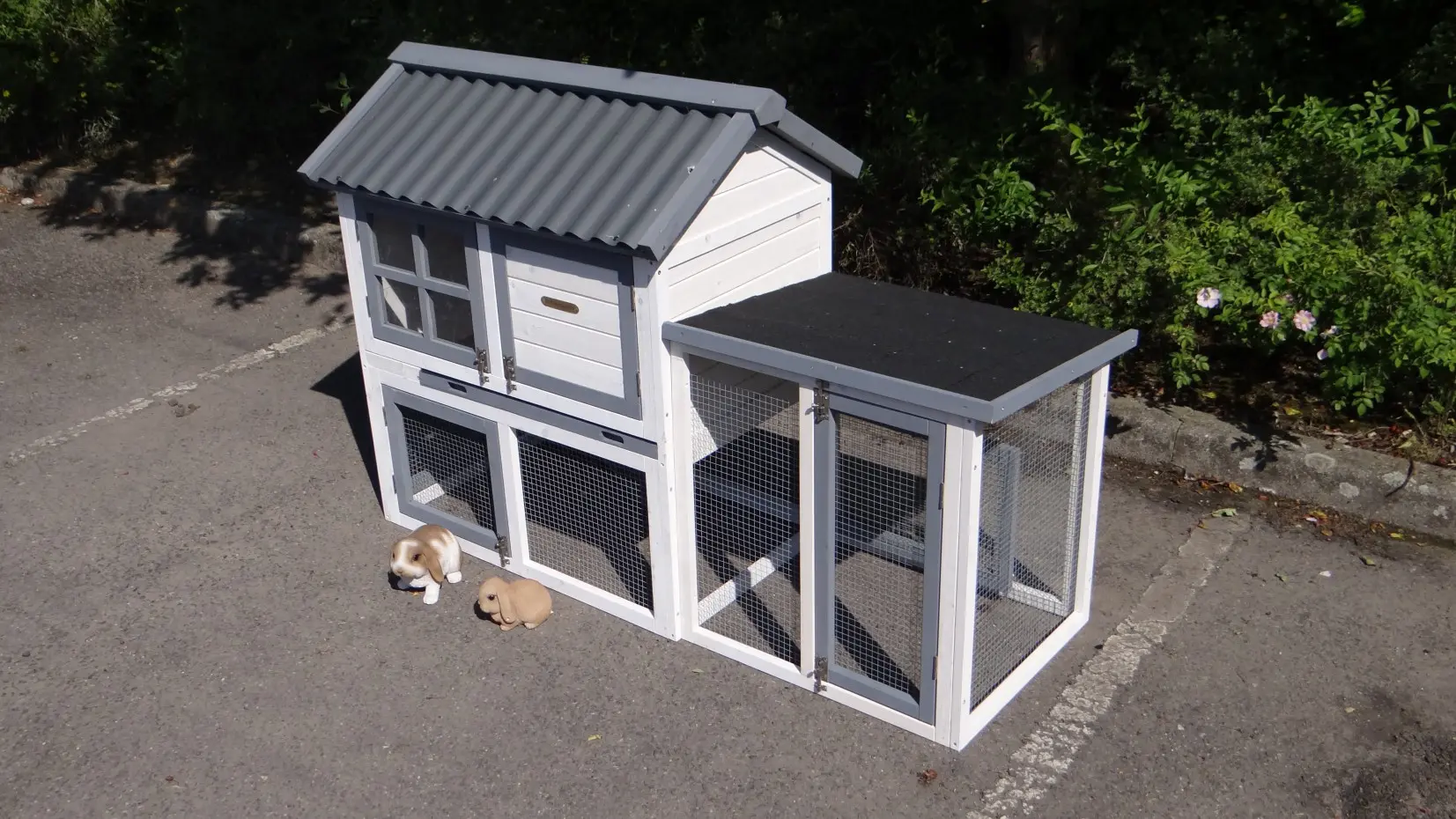 - The rabbit hutch has a plastic roof