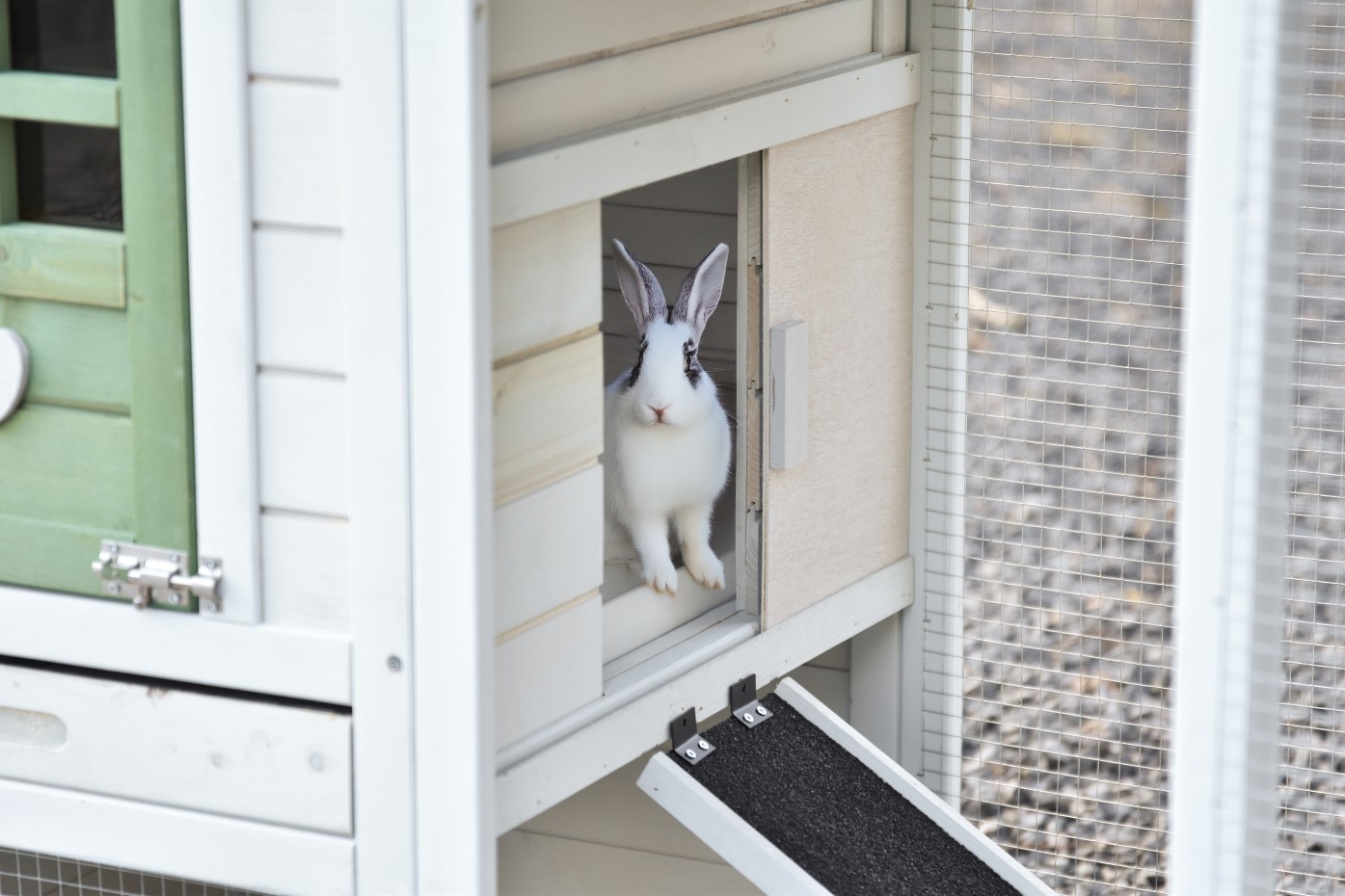 - The doors of this rabbit hutch are equiped with double locks