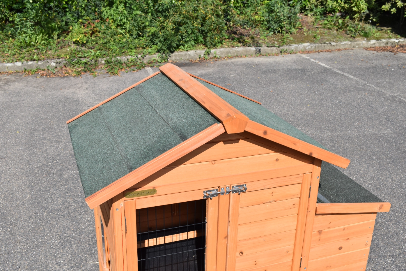 - The roof of this rabbit hutch is equipped with roofing felt