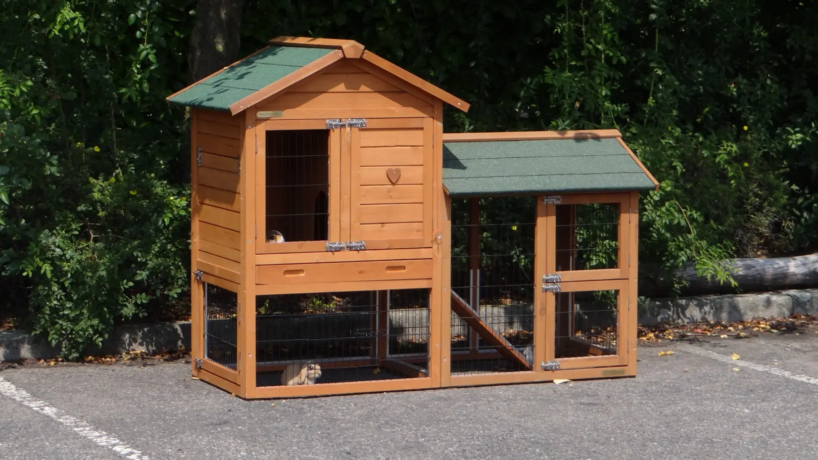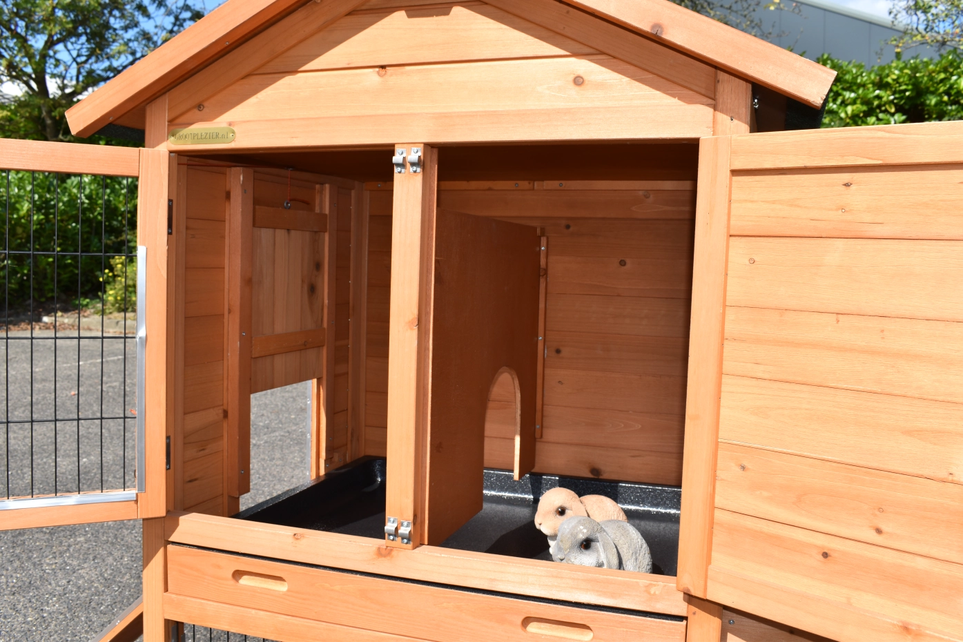 - The doors of this rabbit hutch are equiped with double locks
