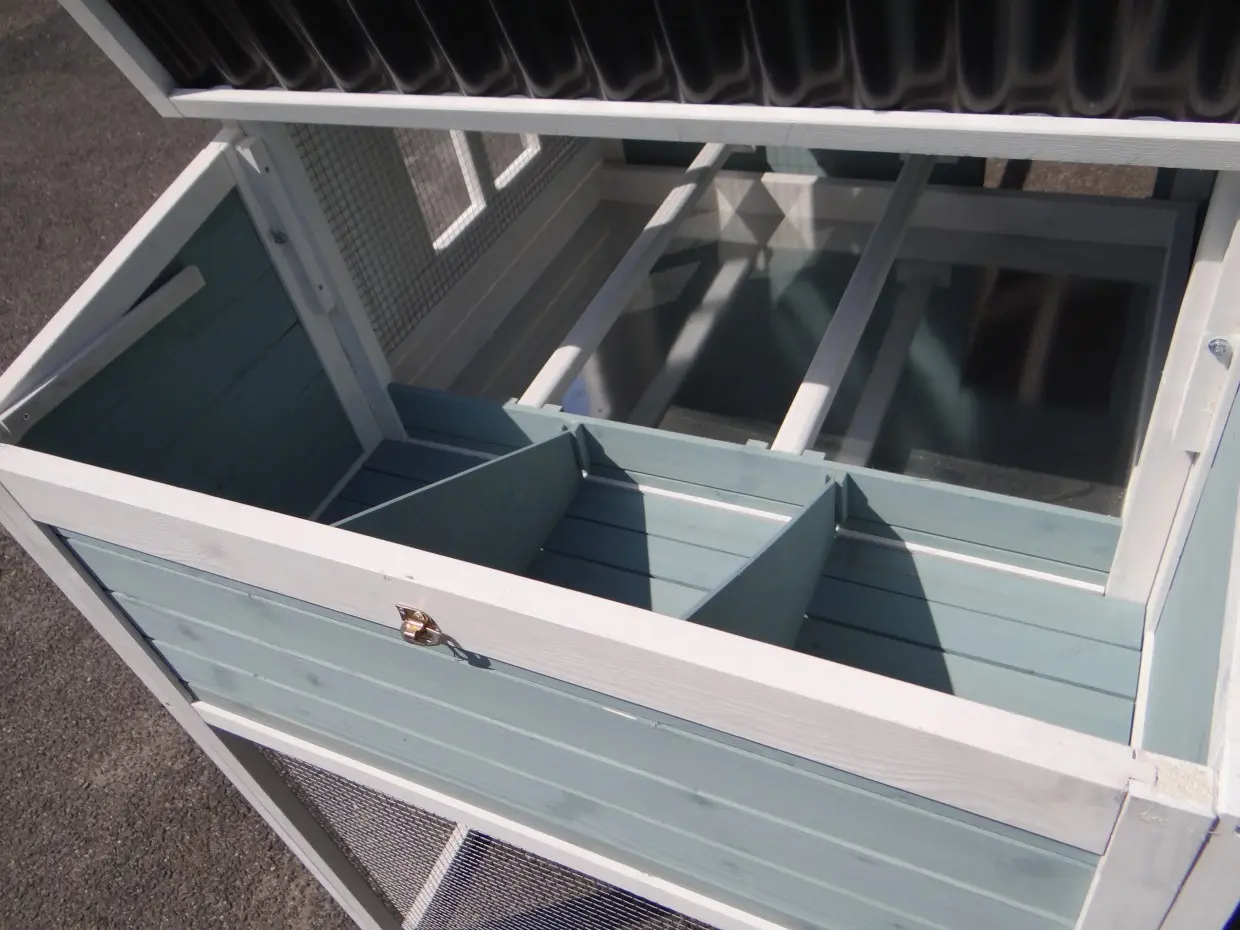 • This rabbit hutch is equipped with a nesting box