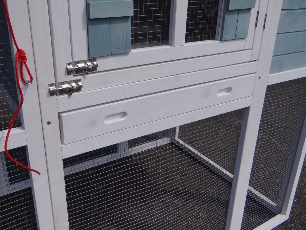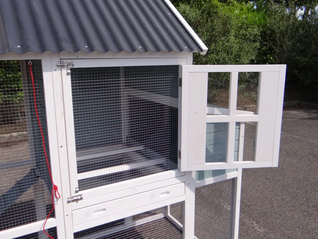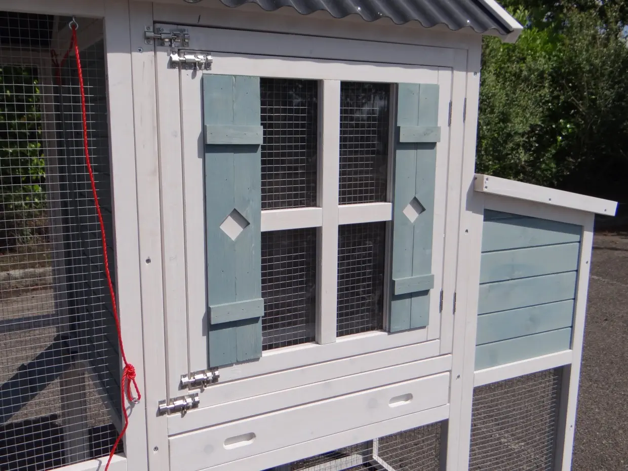 • The doors of this rabbit hutch are equiped with double locks