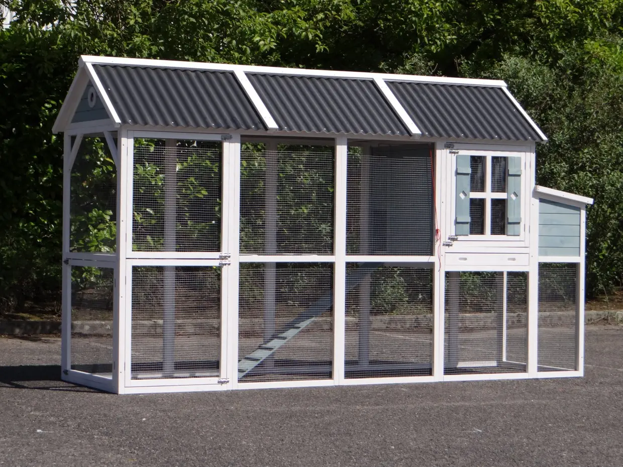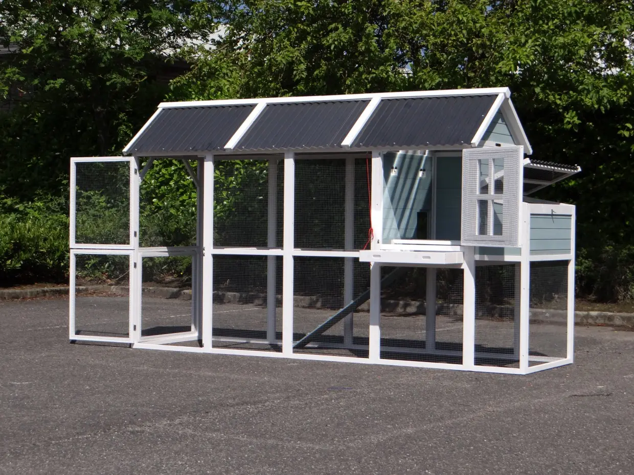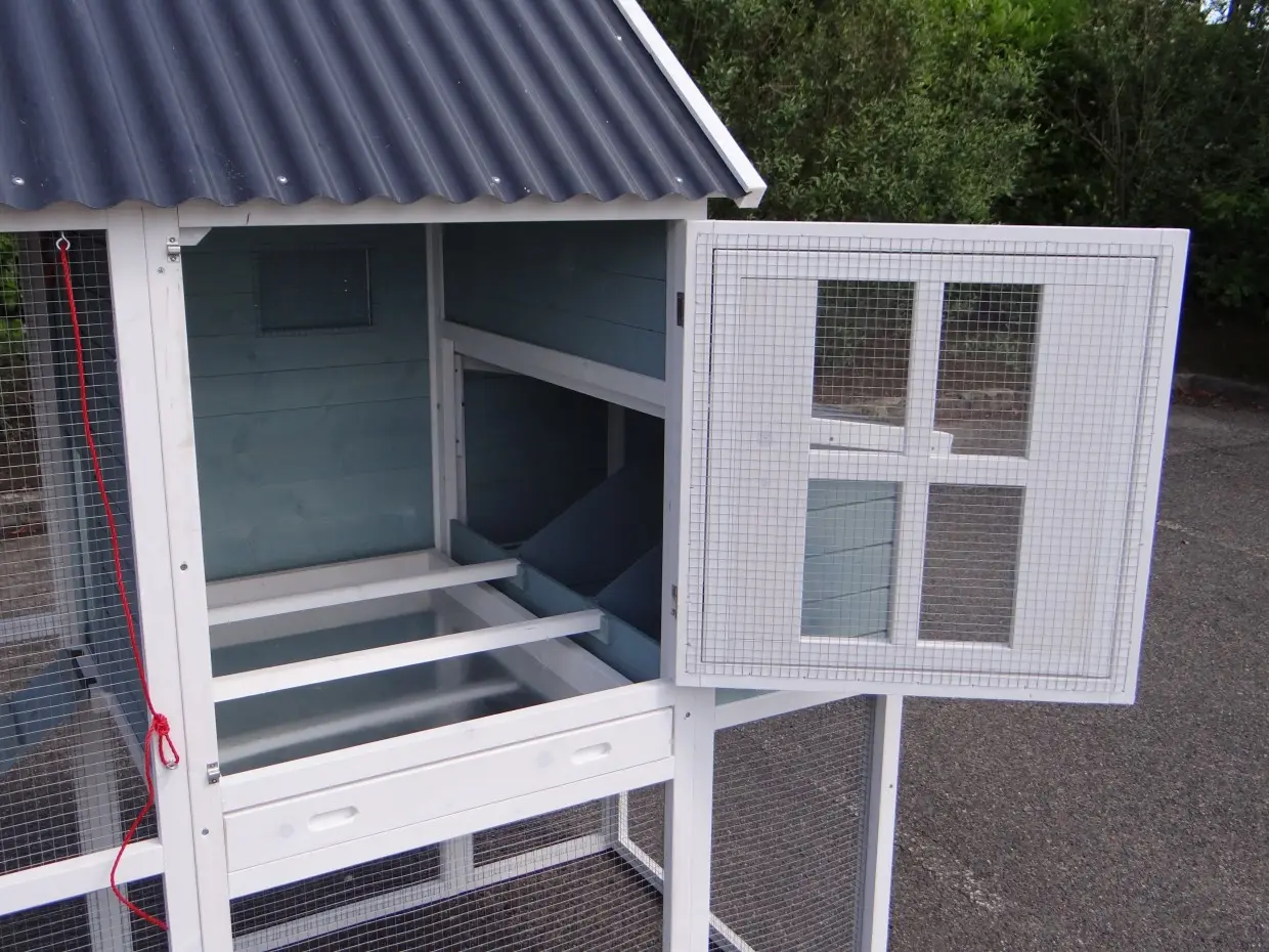 • The doors of this rabbit hutch are equiped with double locks