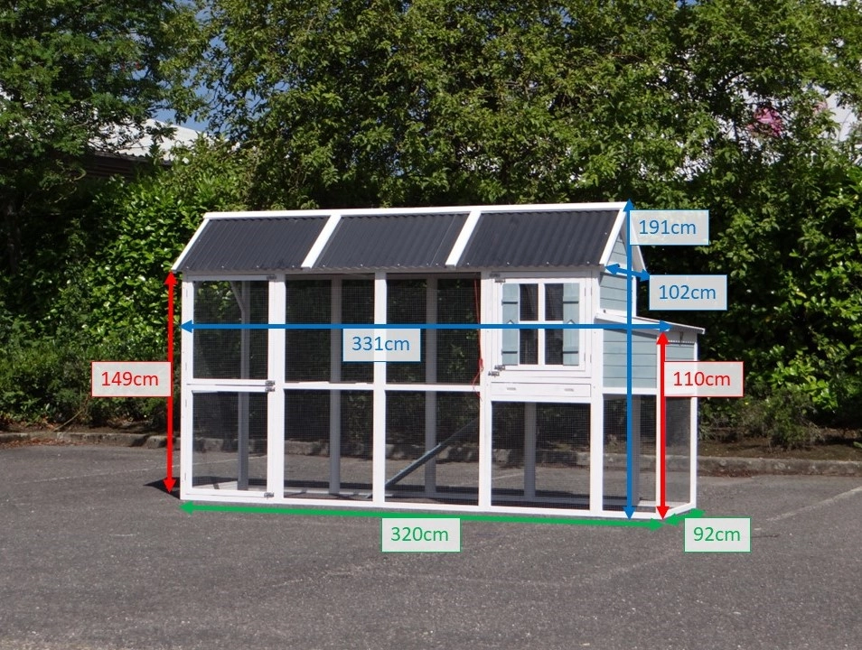 Outer dimensions including roof (DxH) 331x102x191cm