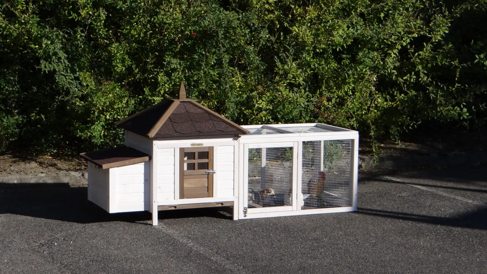 This rabbit hutch is actually a henhouse. However, it is very used for big rabbits as well. You should keep in mind when you use it for rabbits, that this chicken coop doesn't contain any chewing protection. Maximal dimensions, incl. roof, are 200x77x99cm.