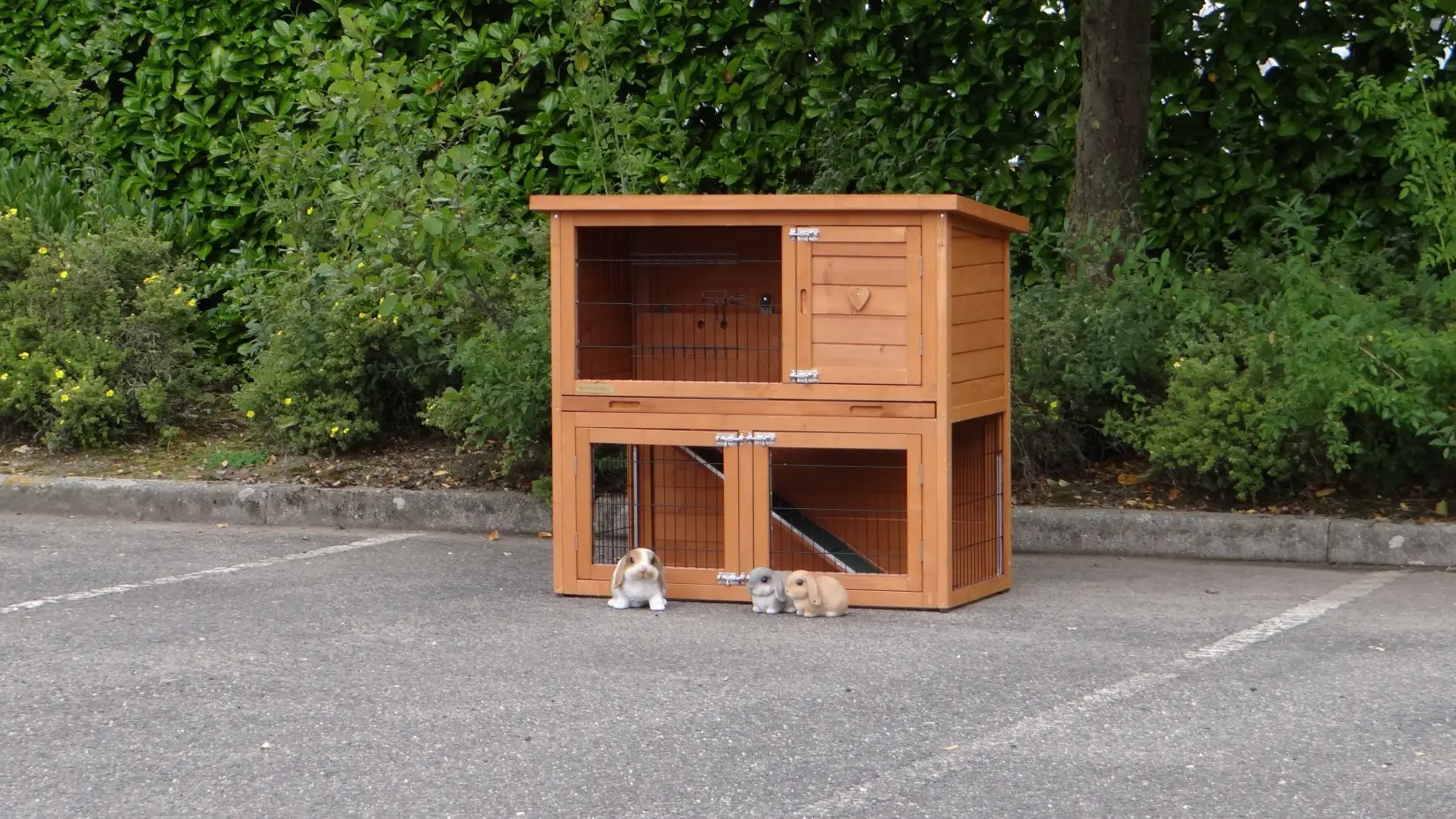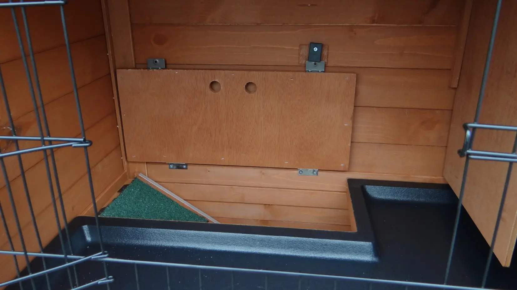• The doors of this rabbit hutch are equiped with double locks