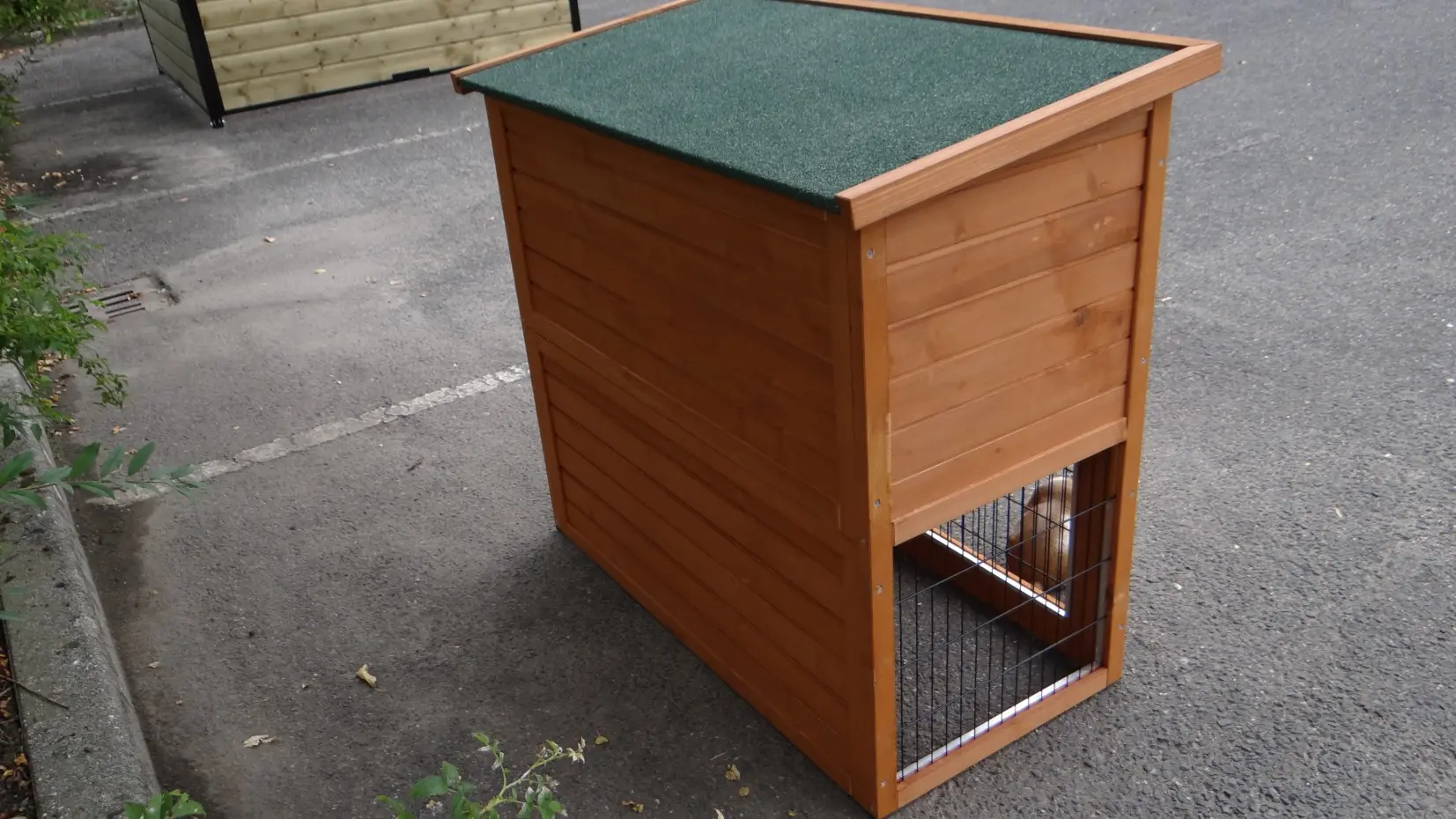 • The roof of this rabbit hutch is equipped with roofing felt