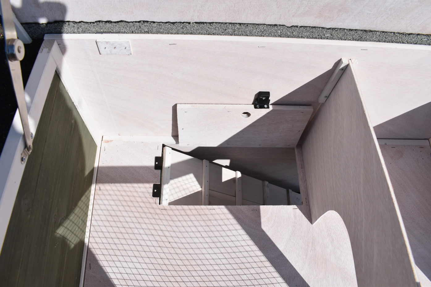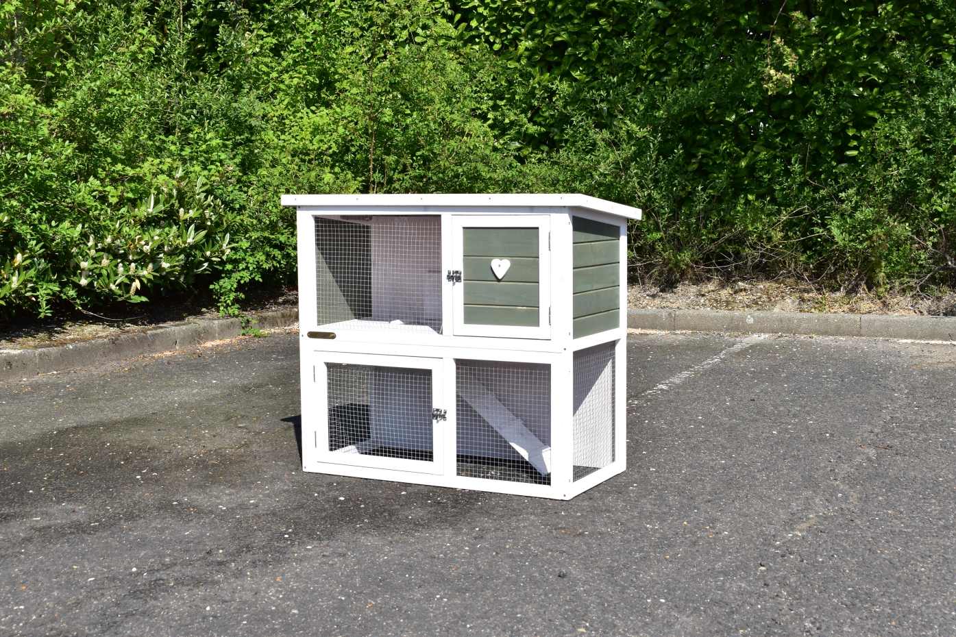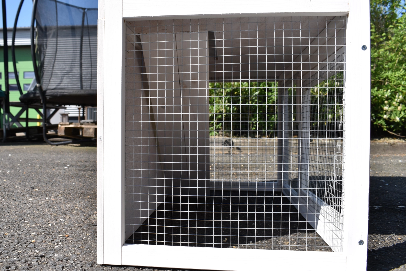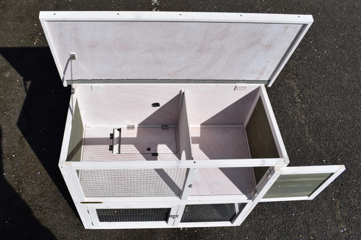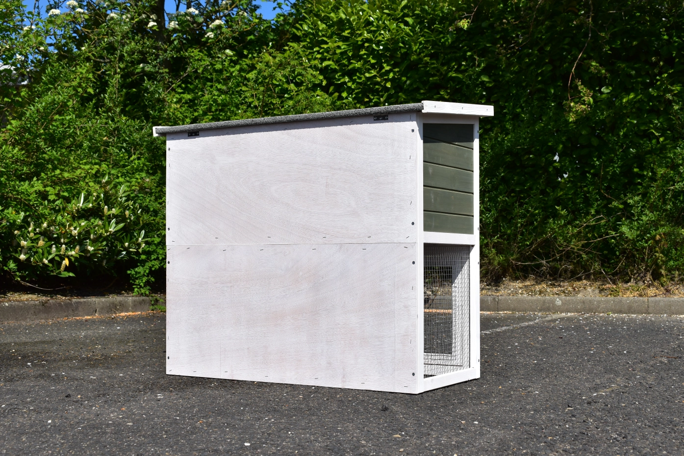 • The roof of this rabbit hutch is equipped with roofing felt
