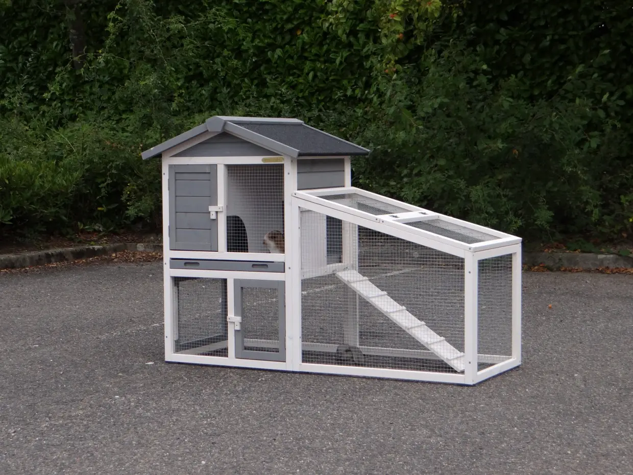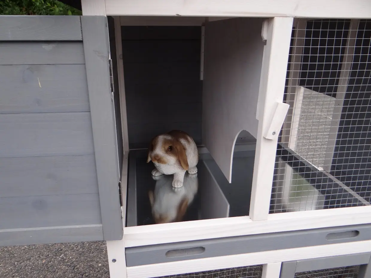 Rabbit hutch Cato is a cheap hutch, but it has a large run. The run has 2 doors and, partially, also a hinged roof. Rabbit hutch Cato is a nice and practical hutch for your rabbit. The sleeping compartment is lockable. The sleeping compartment is provided with a practical tray, to clean the hutch very easily.