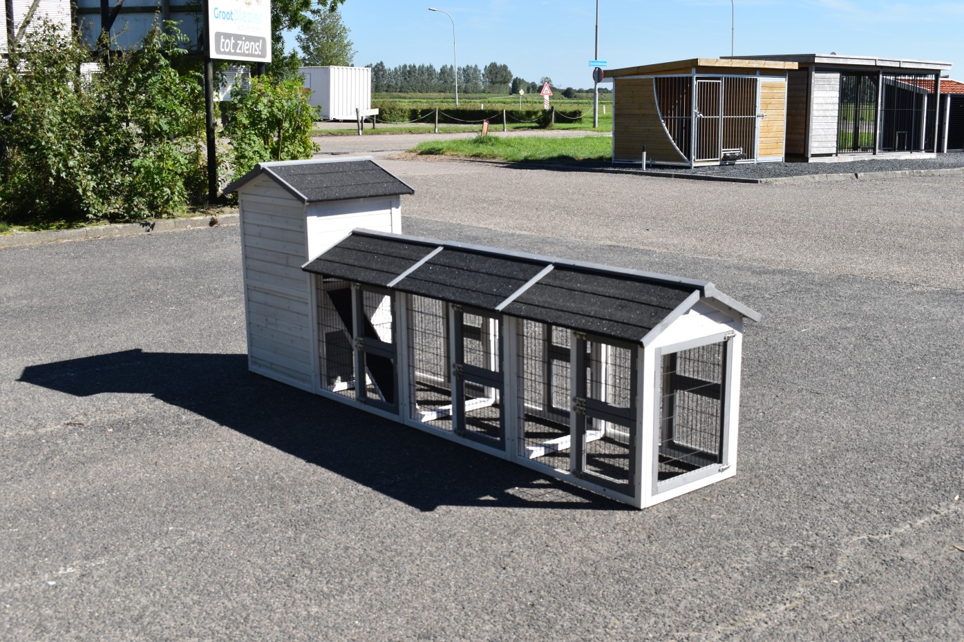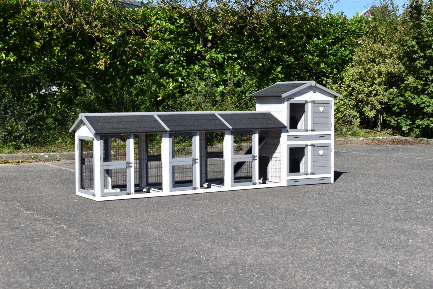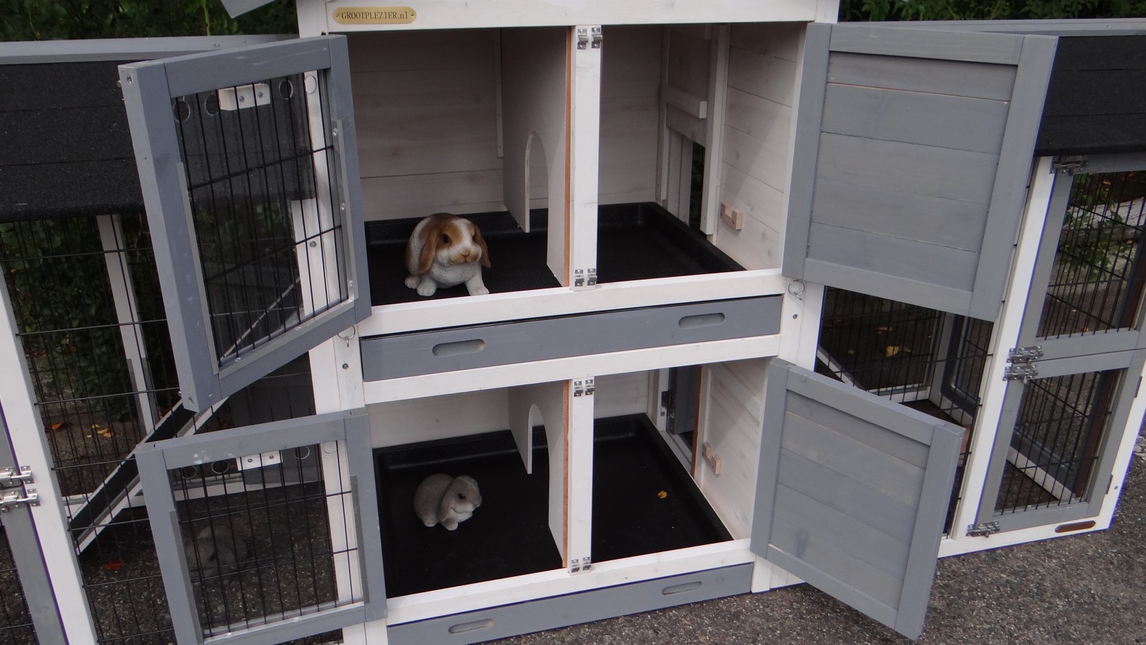 The rabbit hutch Double Small is extended with 3 runs. The hutch has 2 lockable sleeping compartments, so that it is possible to keep more animals seperate from each other. The hutch is suitable for 2 till 4 rabbits.