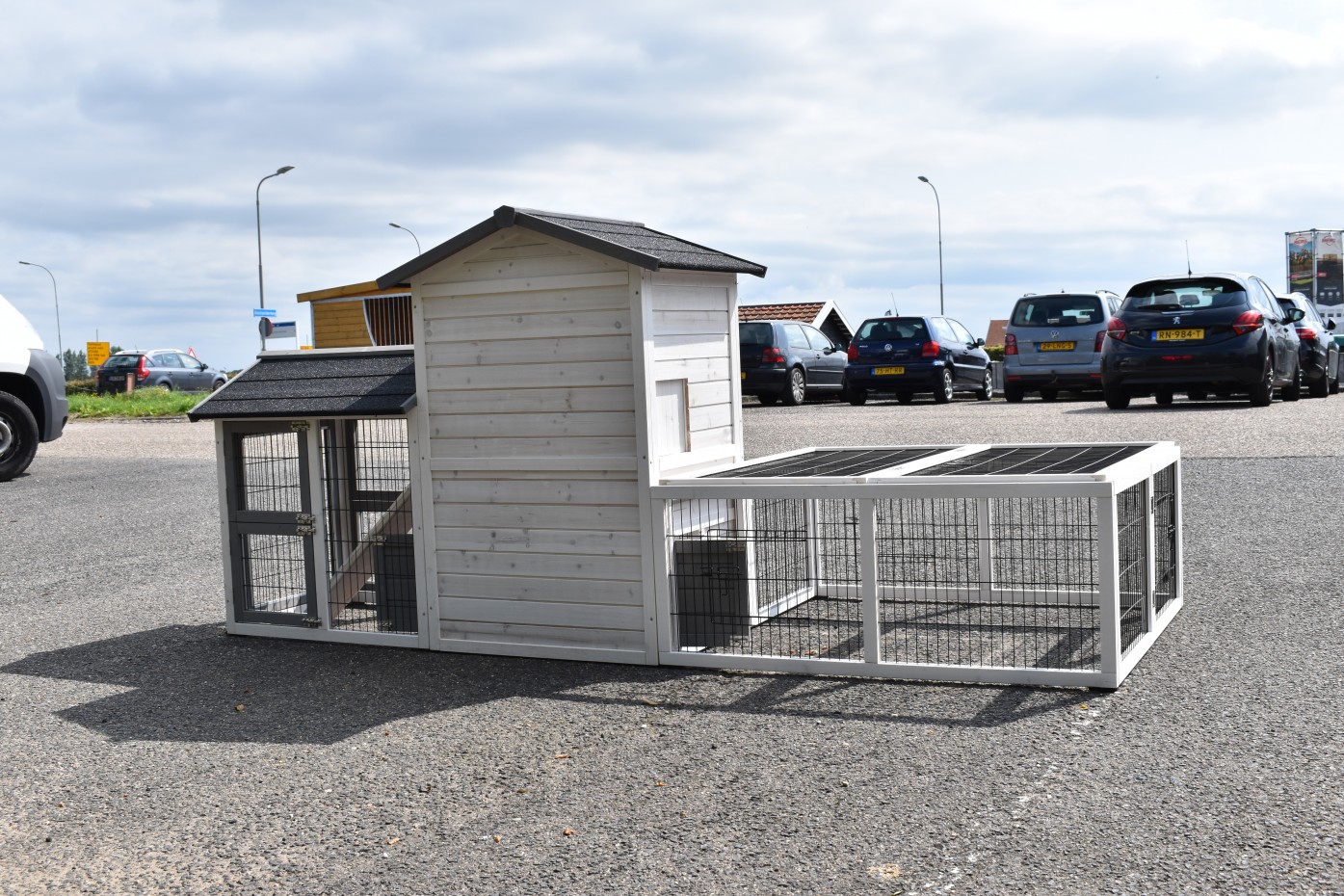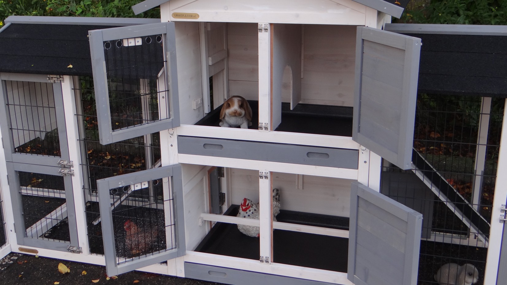 The rabbit hutch Double Small has been expanded with 2 runs. The Double Small is a very nice rabbit hutch with many doors. The Multirun can also be used separately. A practical rabbit hutch with two lockable sleeping areas. This hutch allows you to keep your animals separated from each other.