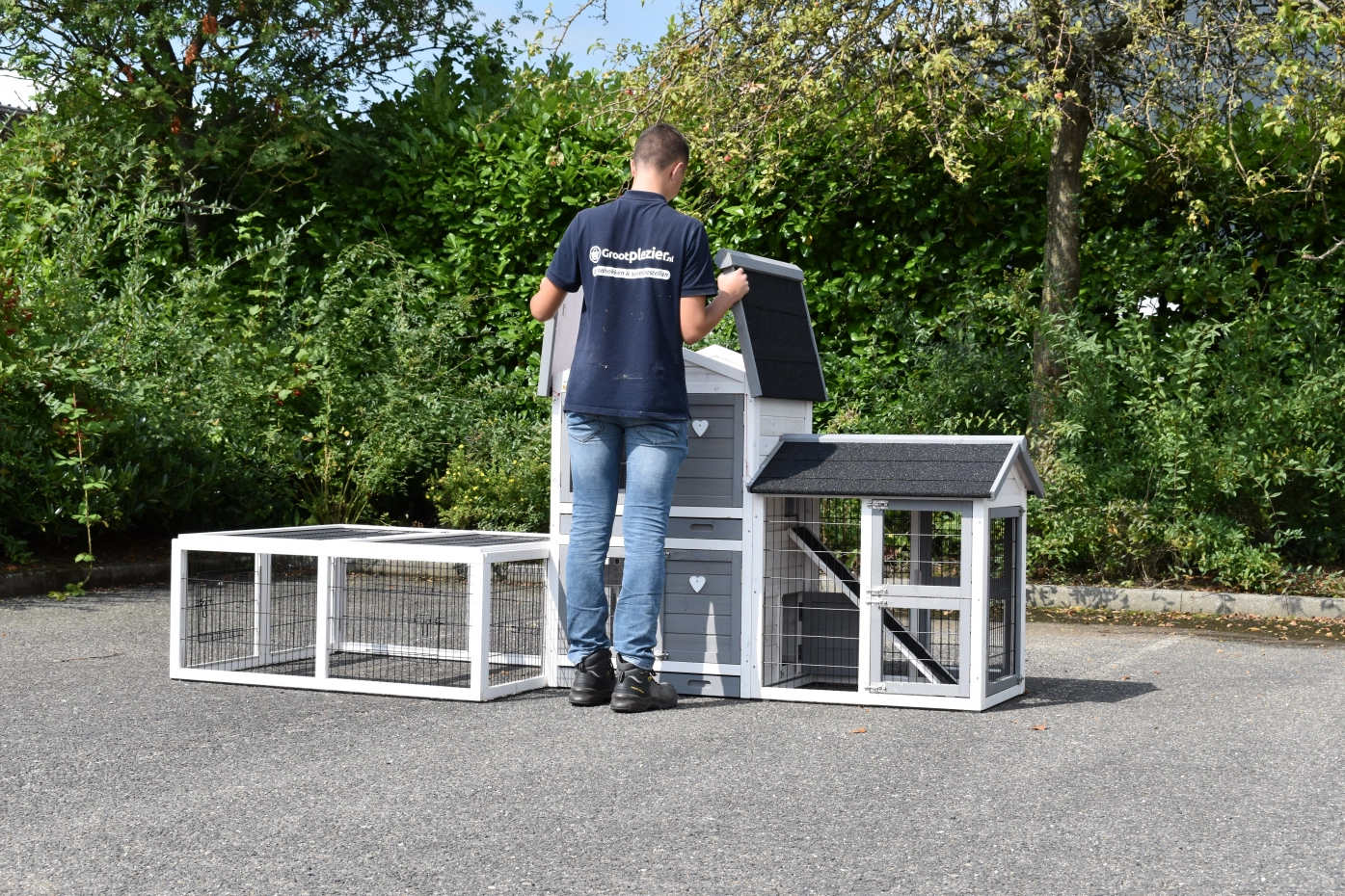 - The roof of this rabbit hutch is equipped with roofing felt