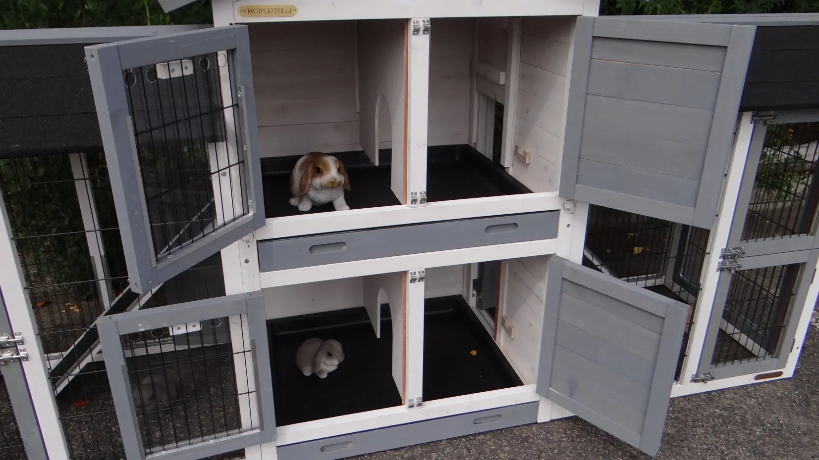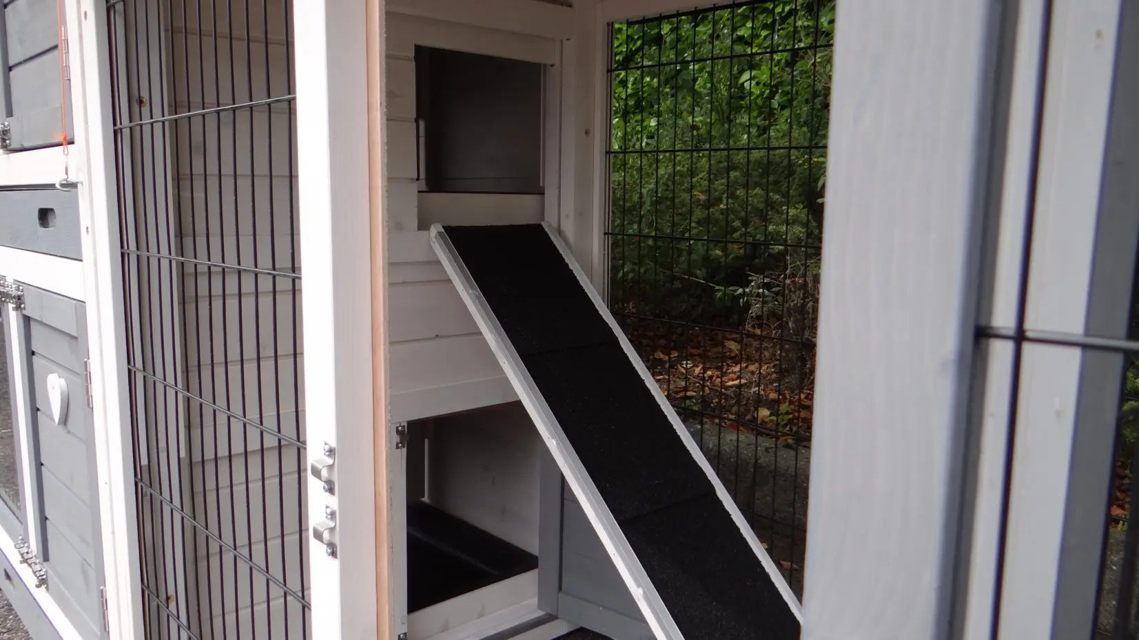 - The doors of this rabbit hutch are equiped with double locks