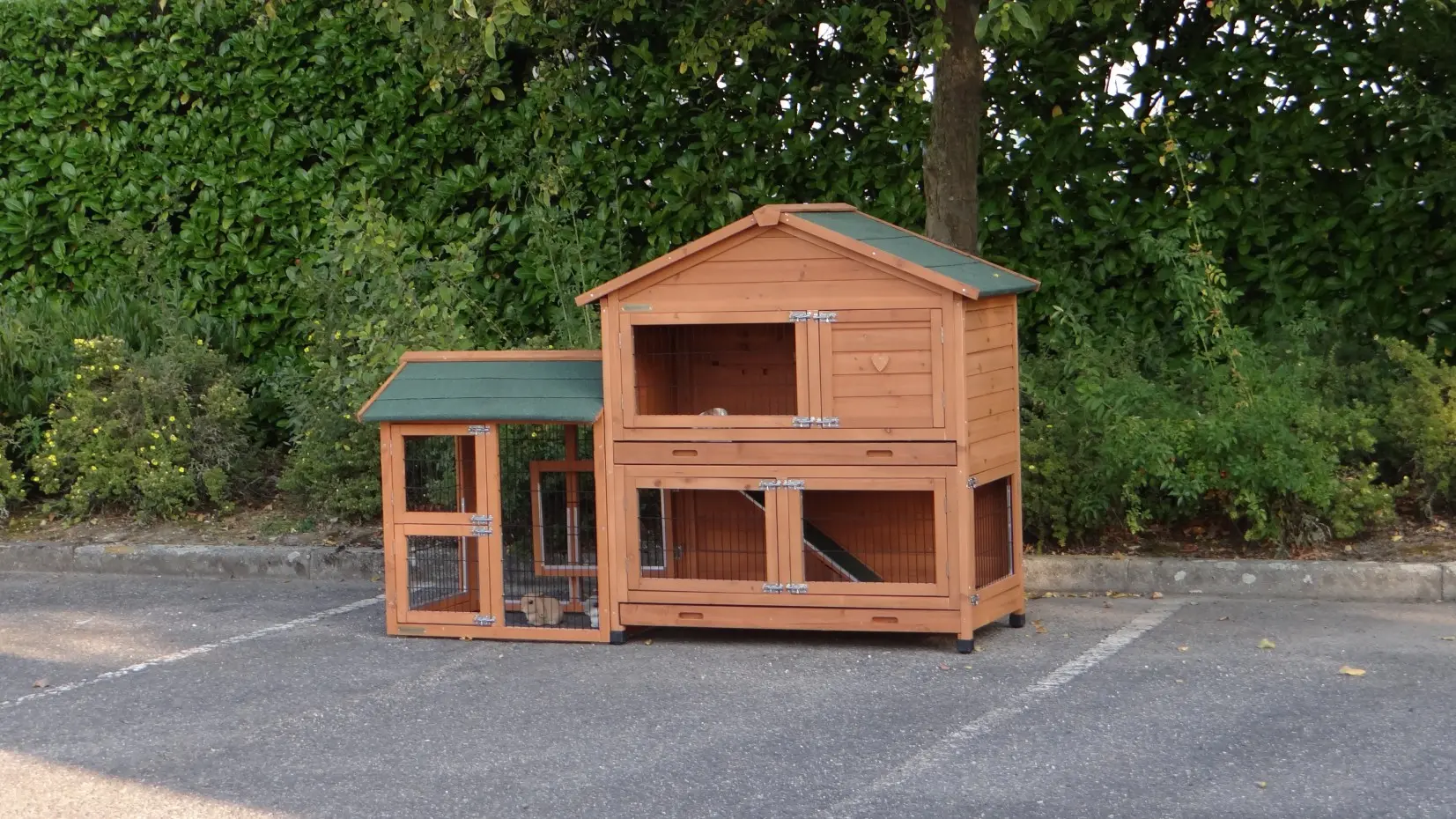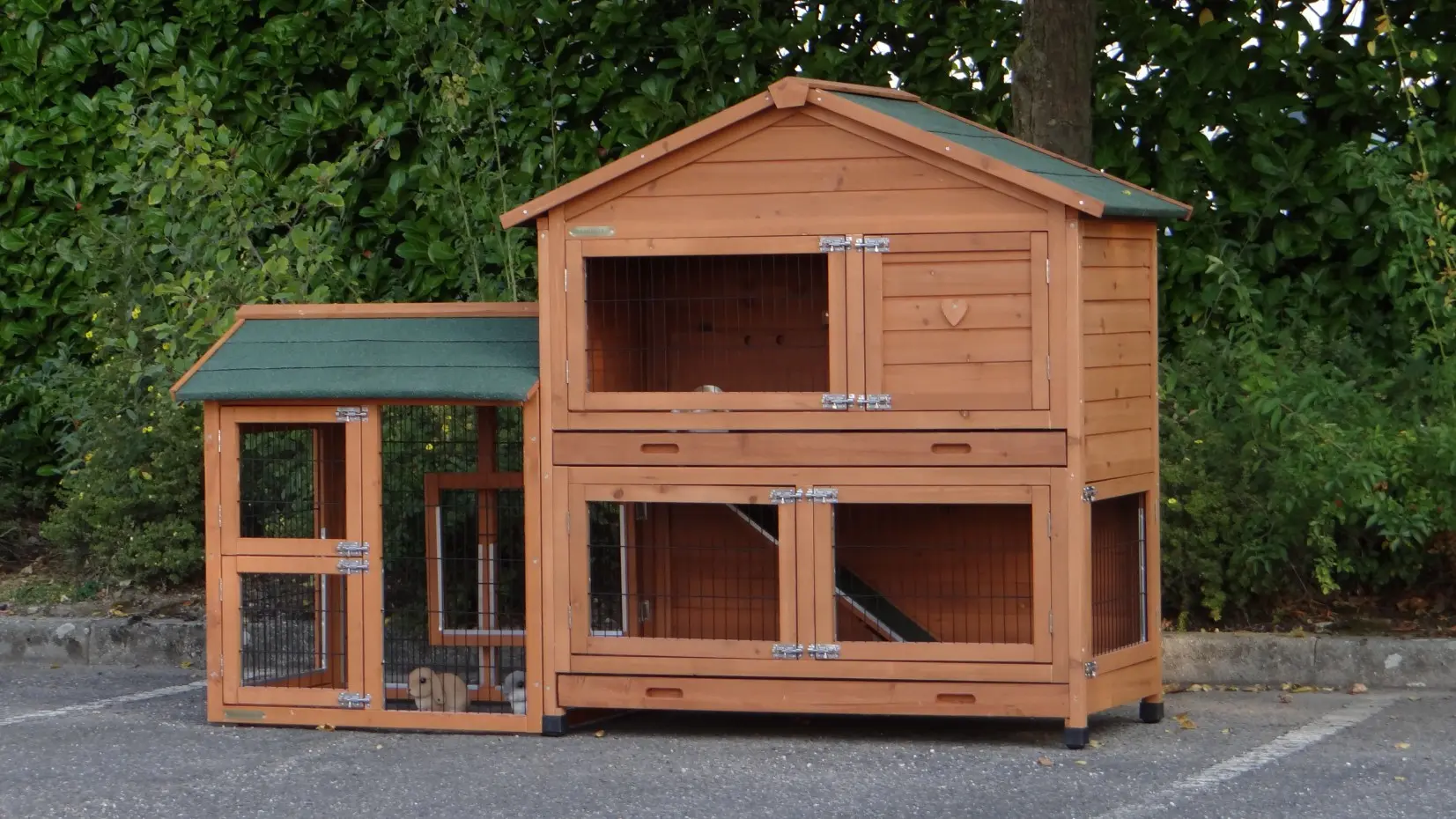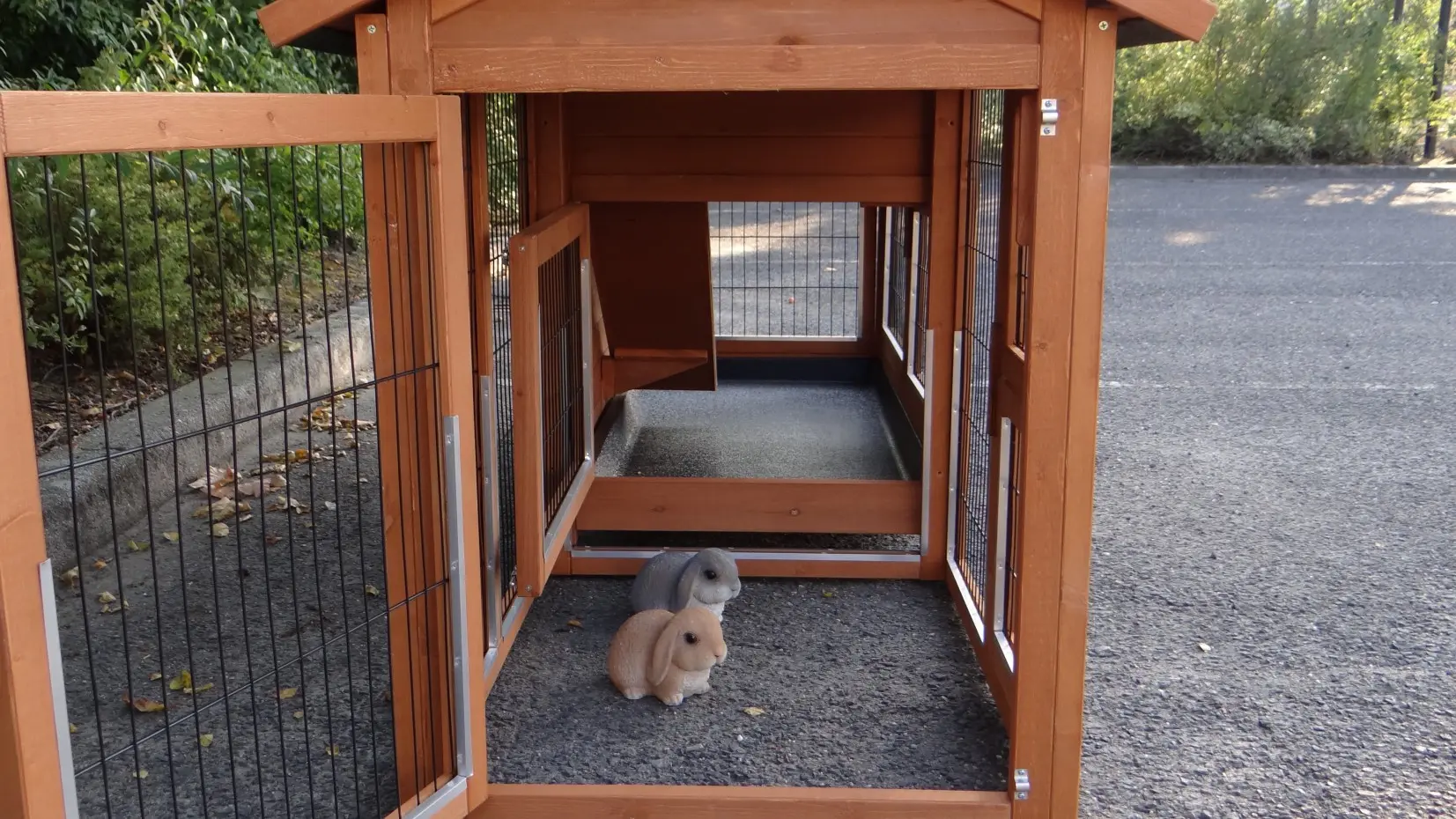 - The doors of this rabbit hutch are equiped with double locks