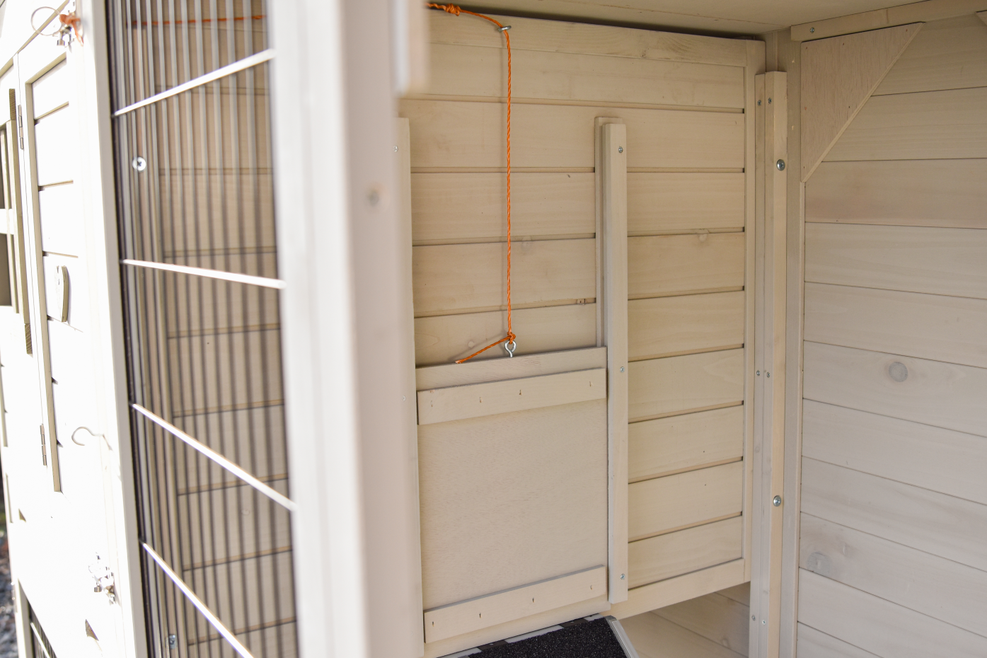 - The doors of this rabbit hutch are equiped with double locks