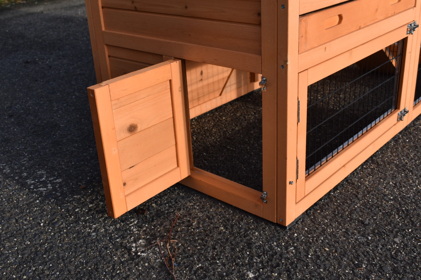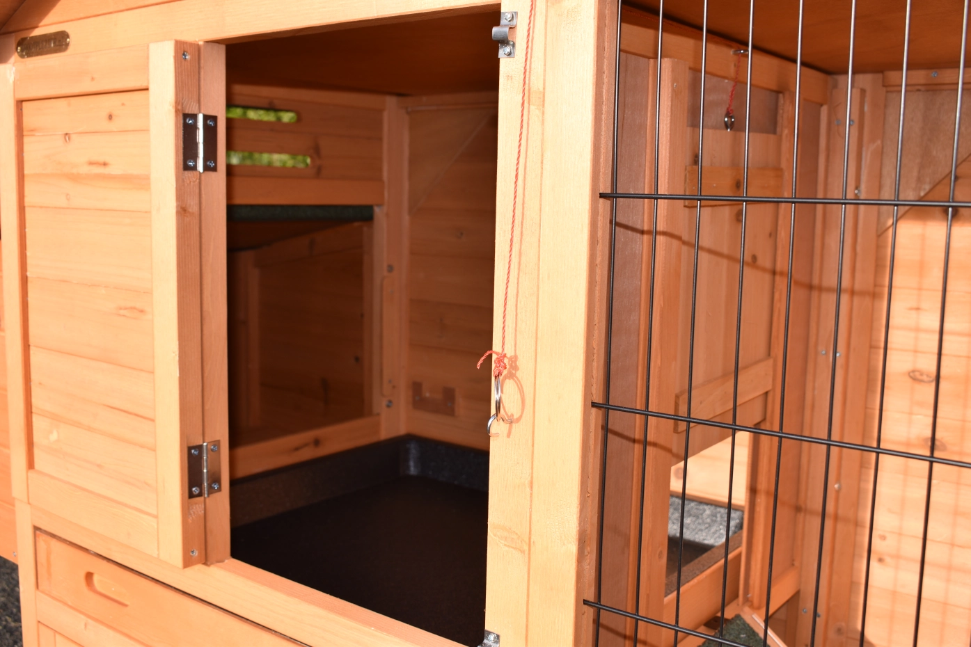 - The doors of this rabbit hutch are equiped with double locks