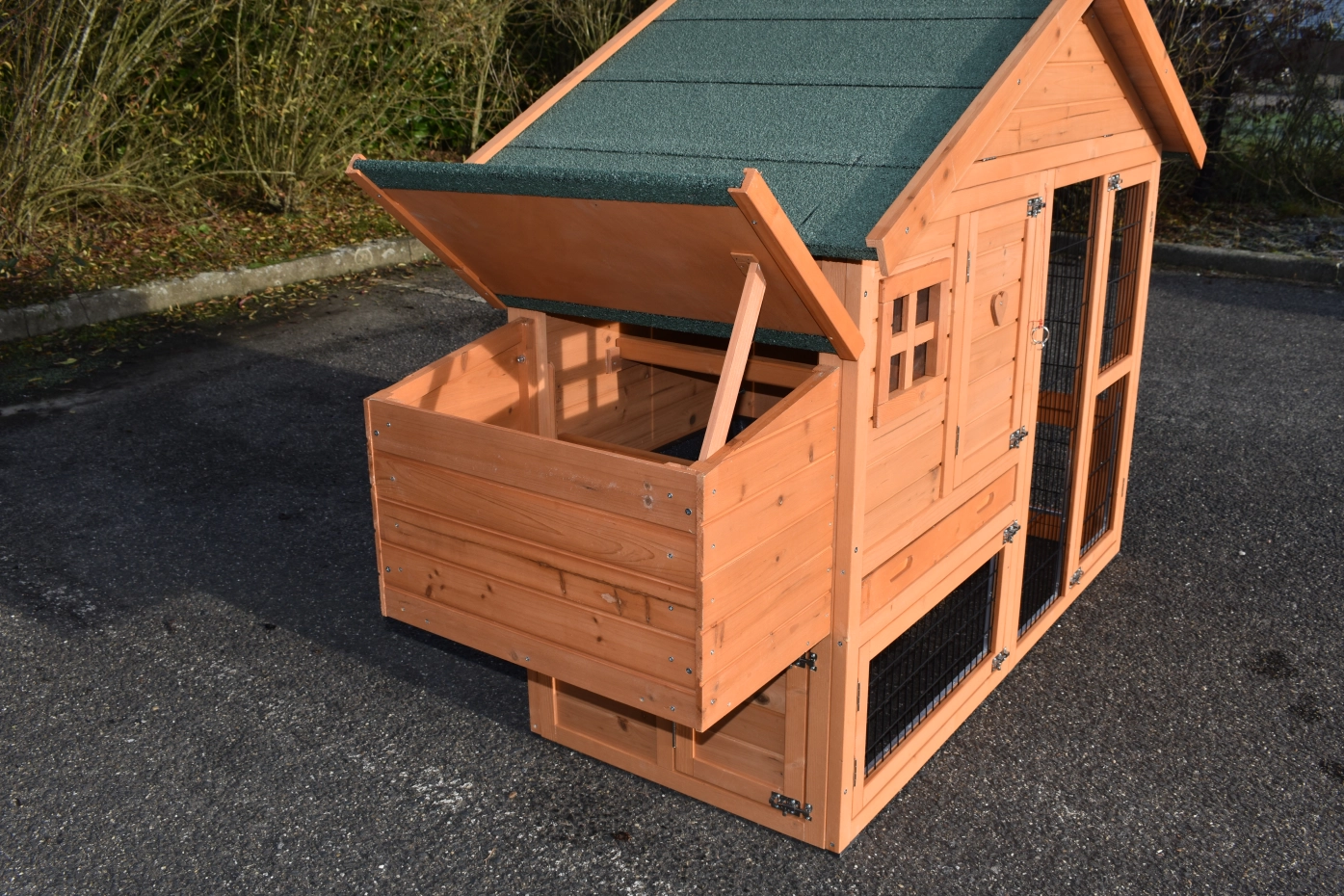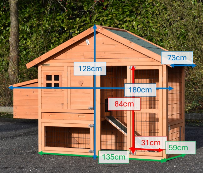 | Outer dimensions incl. roof and nest box (WxDxH) | 180x73x128cm |