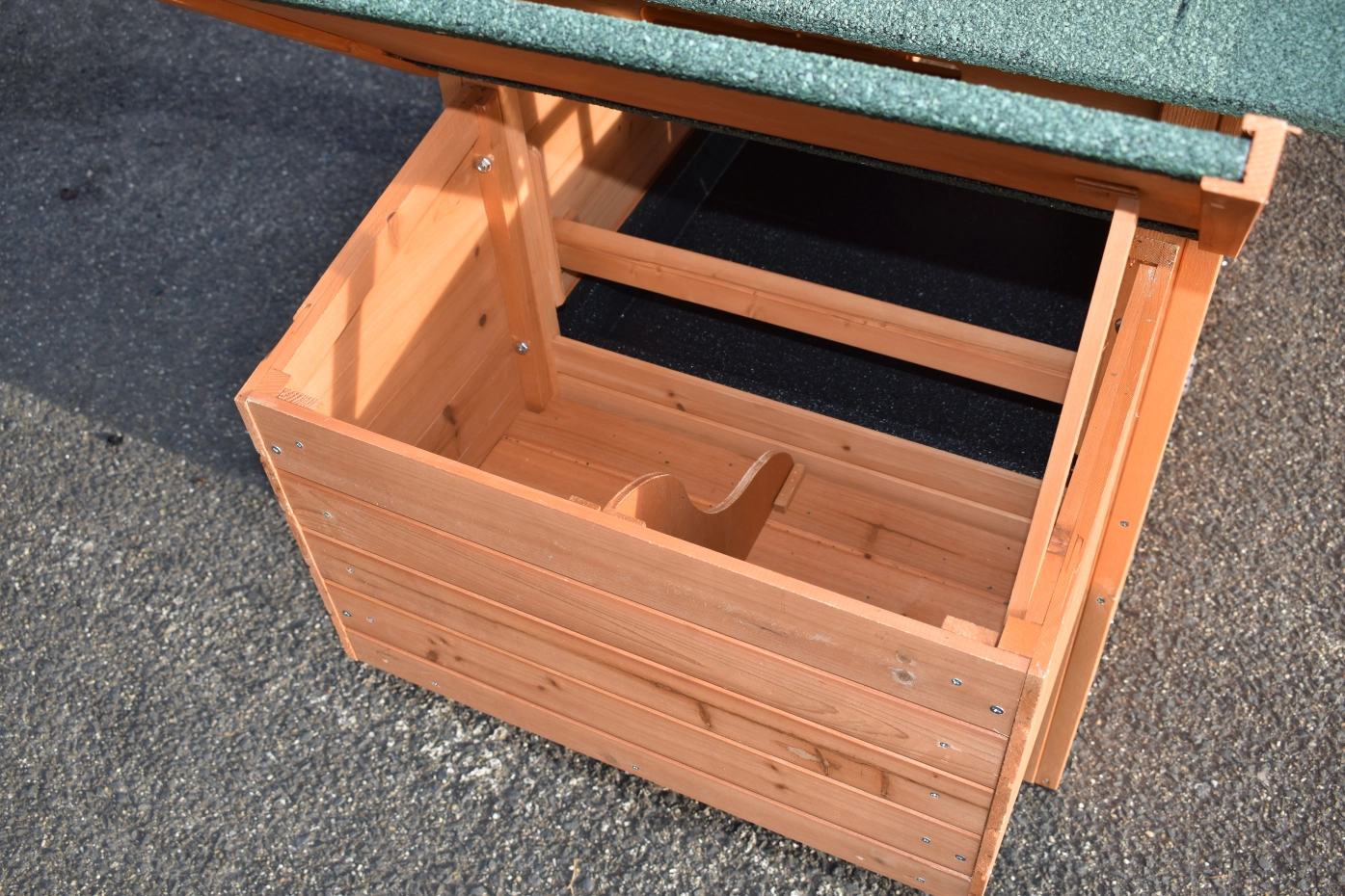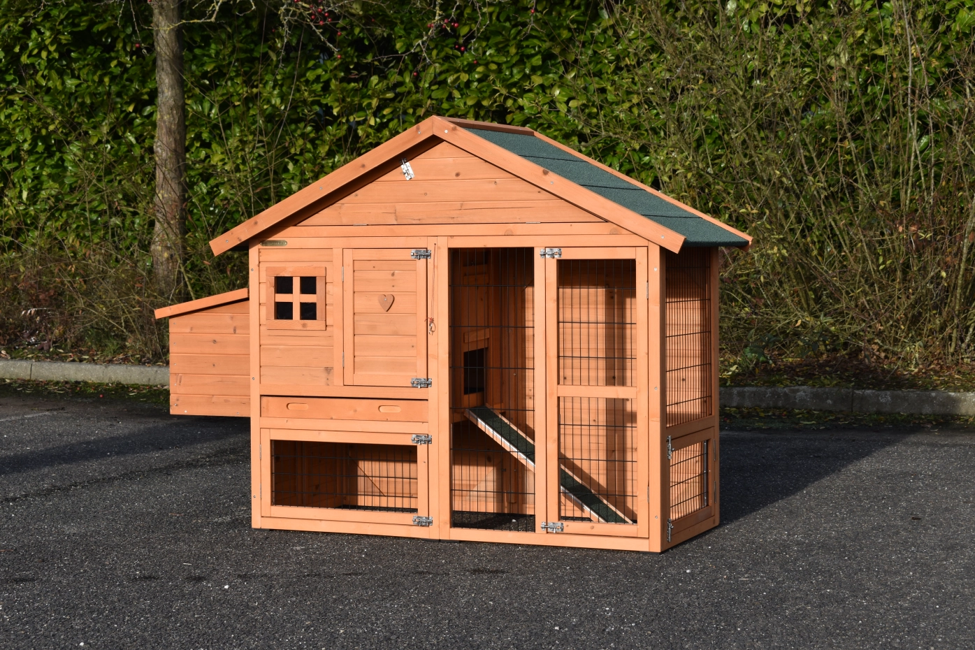 - The roof of this rabbit hutch is equipped with roofing felt