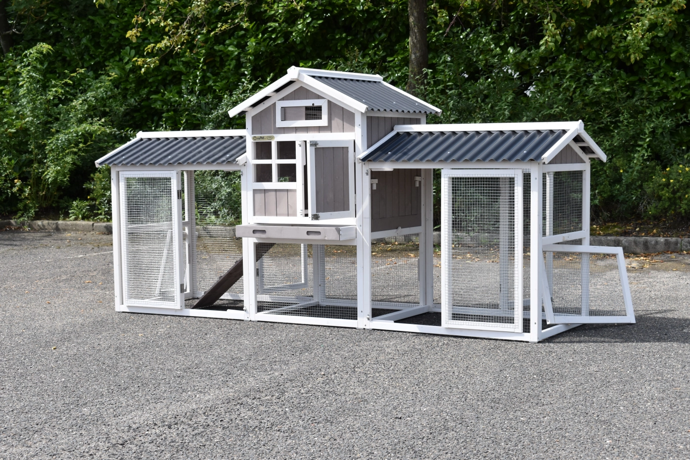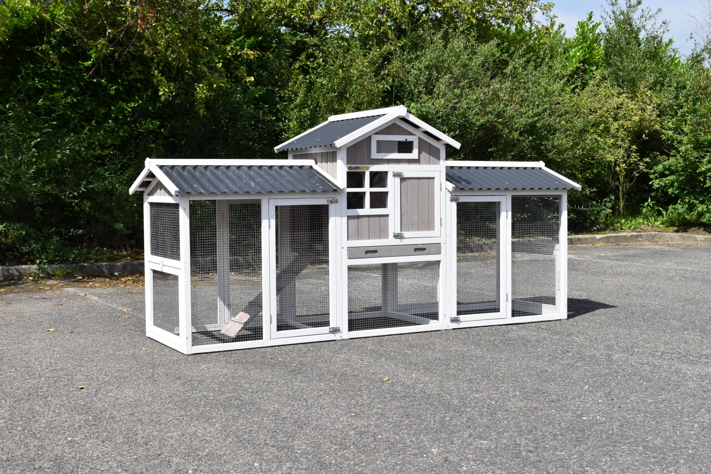 - The rabbit hutch has a plastic roof