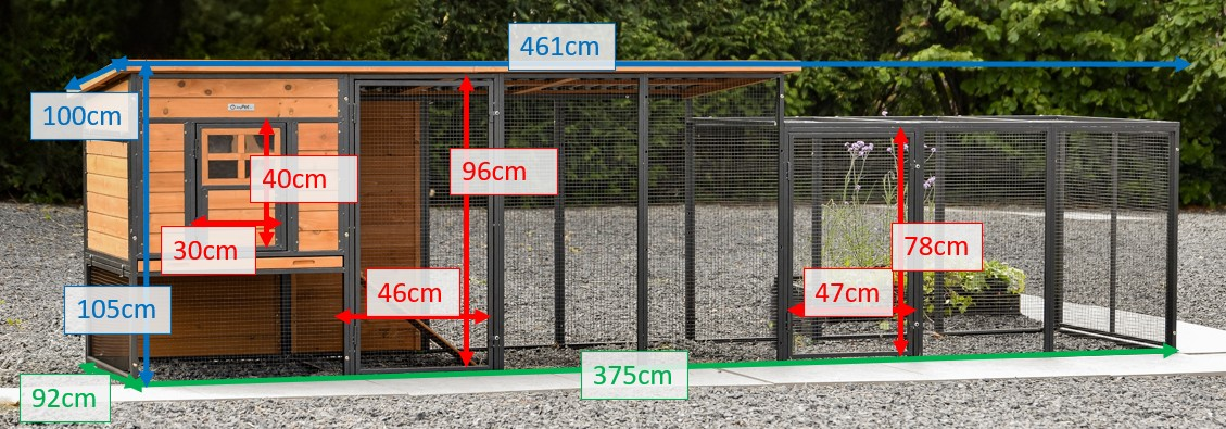 - The roof of the additional run is equipped with mesh (ca. 12x12mm)