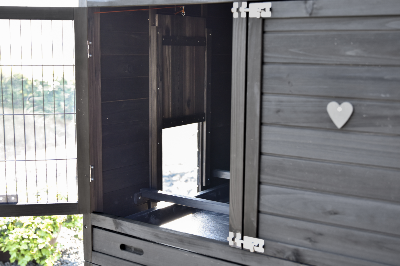 - The doors of this rabbit hutch are equiped with double locks