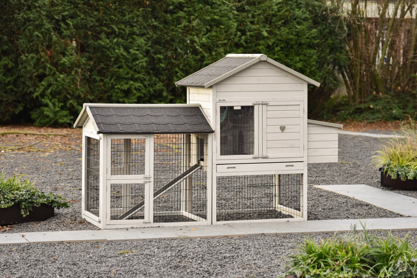 The wood, used for your pet house is a unique natural product which has been processed according to traditional methods in the country of origin, after careful selection. It is characteristic and unique in every way. This wood product has been manually processed. No single piece of wood is the same in shape, structure or color, so color shades are inevitable even within one piece of wood. Wind cracks, imperfections and the presence of large and small knots testify to their origin and years of growth. Bumps are usually manually updated with wood fill. Through use and through the influence of light, new pet houses will finally get a warmer color. Color differences in comparison with the show model or even among themselves are therefore usual. The pet house is stained in the colors as in the picture. You should do it once again to prevent mold and rot. You can easily order the stain together with the pet house.