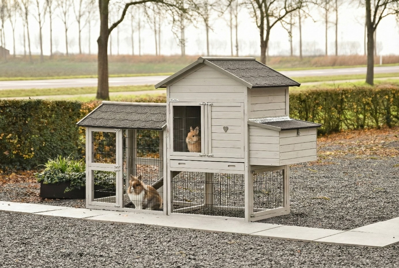 - In any rabbit hutch with attachments, the space between them is not closed watertight
