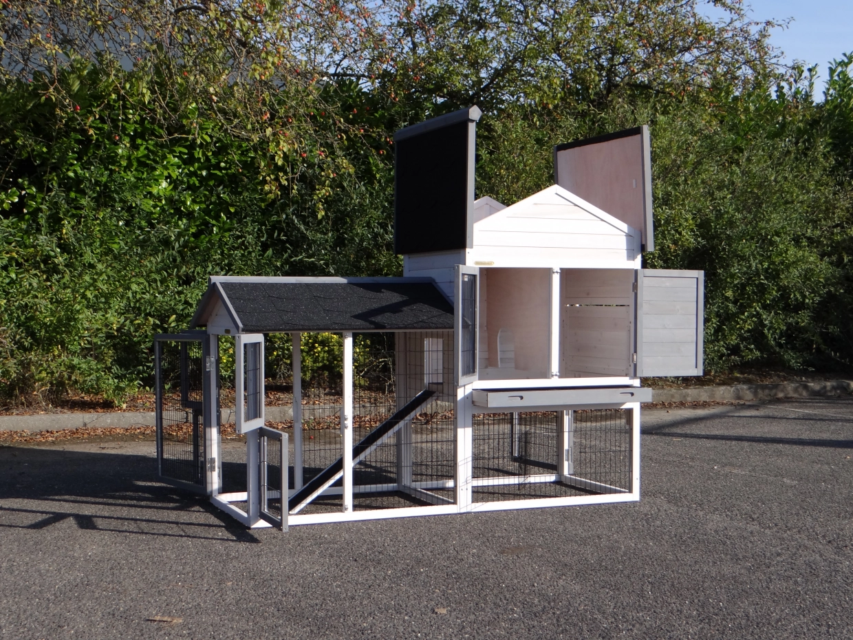 - The doors of this rabbit hutch are equiped with double locks