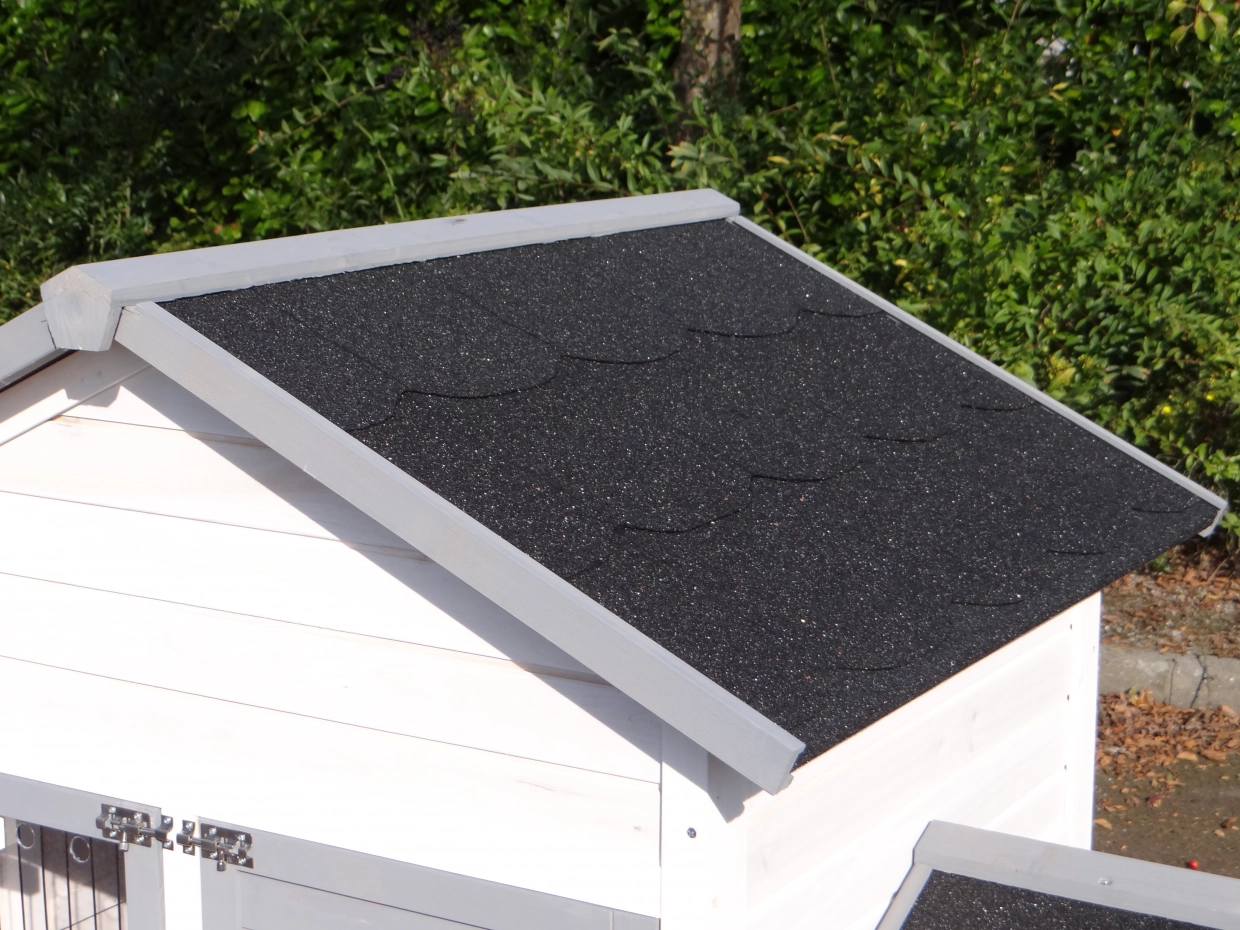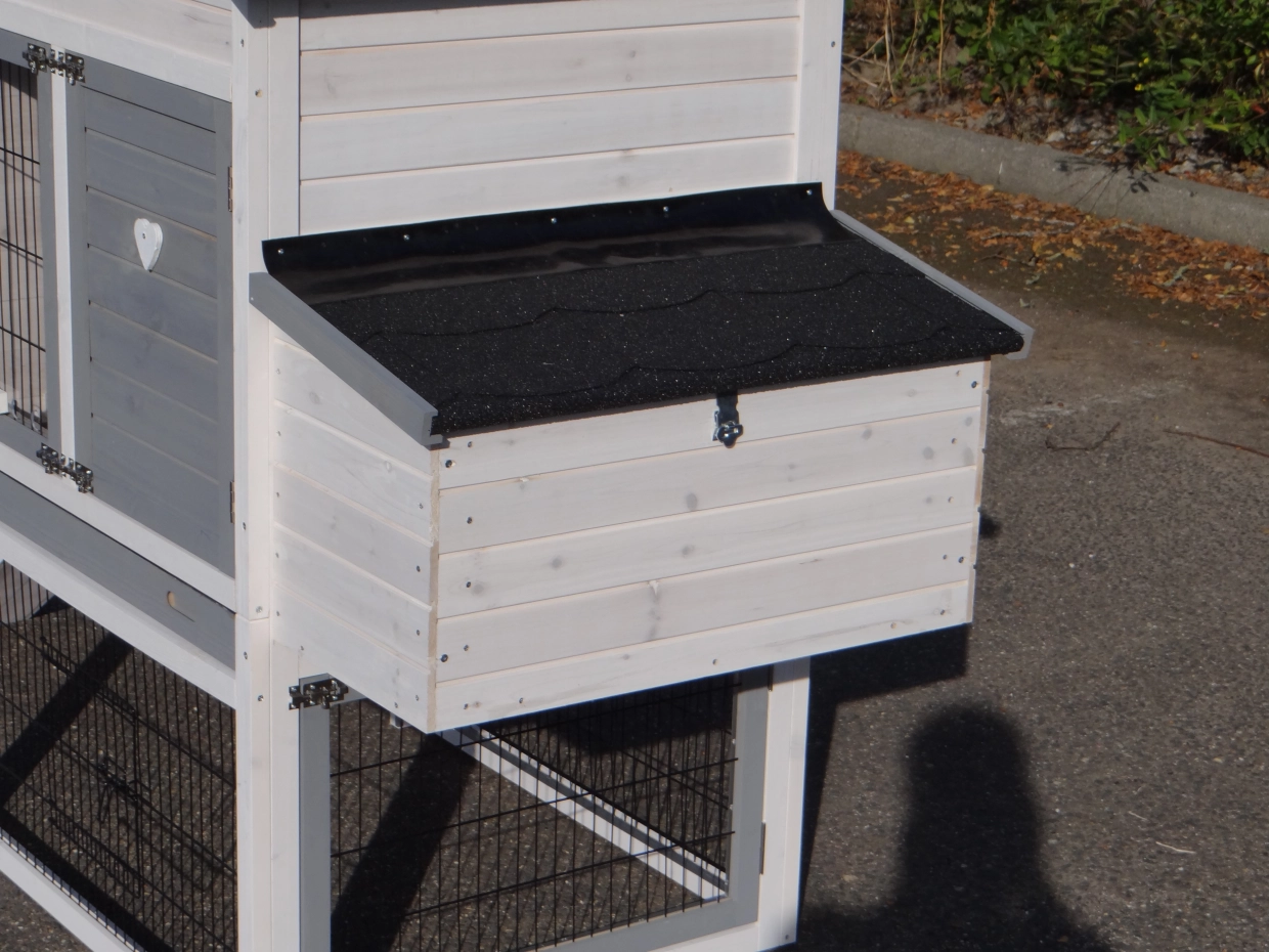 - The roof of this rabbit hutch is equipped with roofing felt