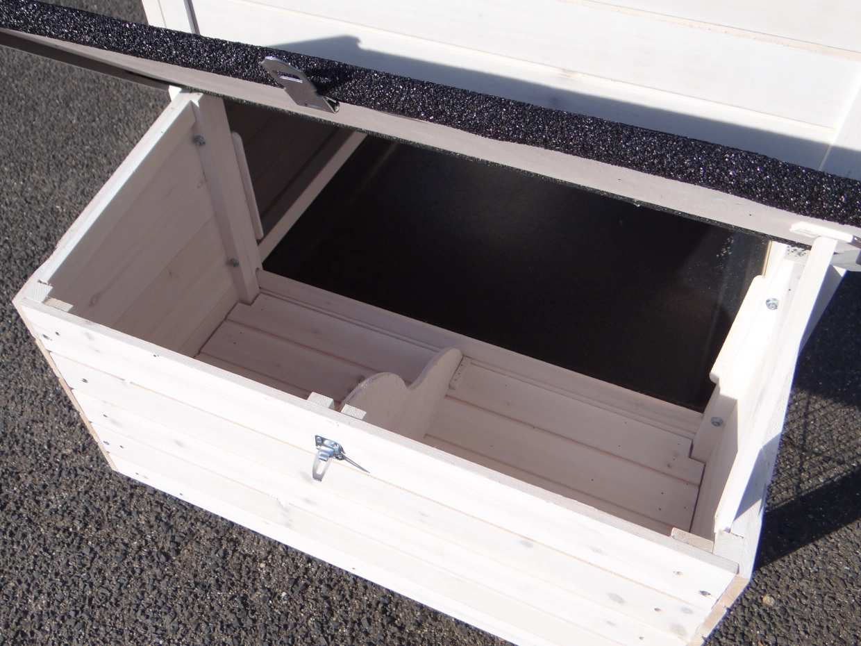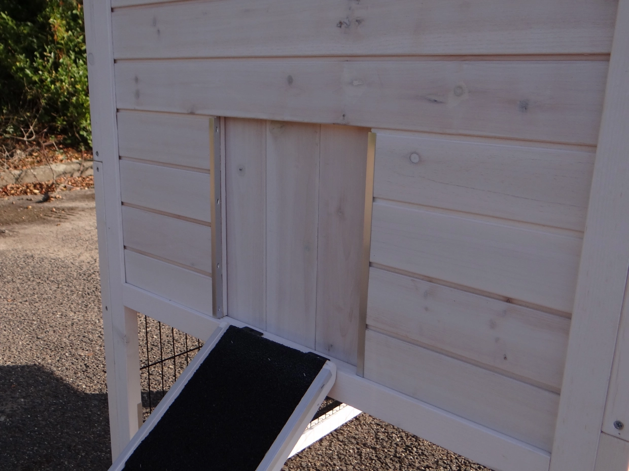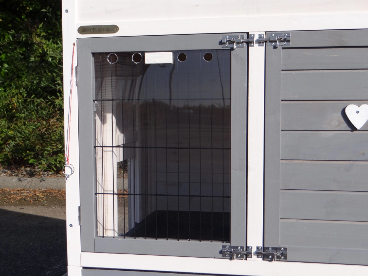 - The doors of this rabbit hutch are equiped with double locks
