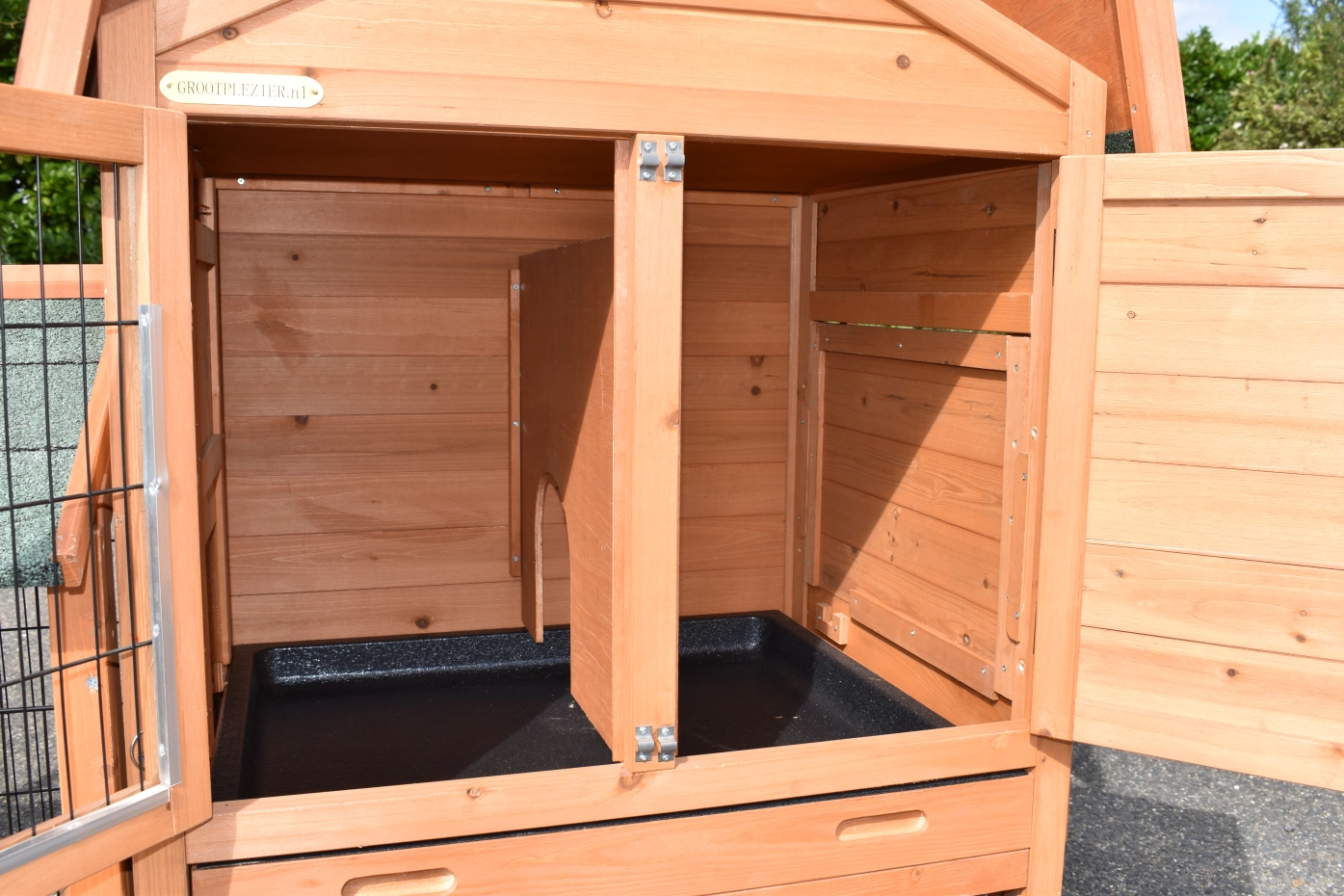 - The doors of this rabbit hutch are equiped with double locks