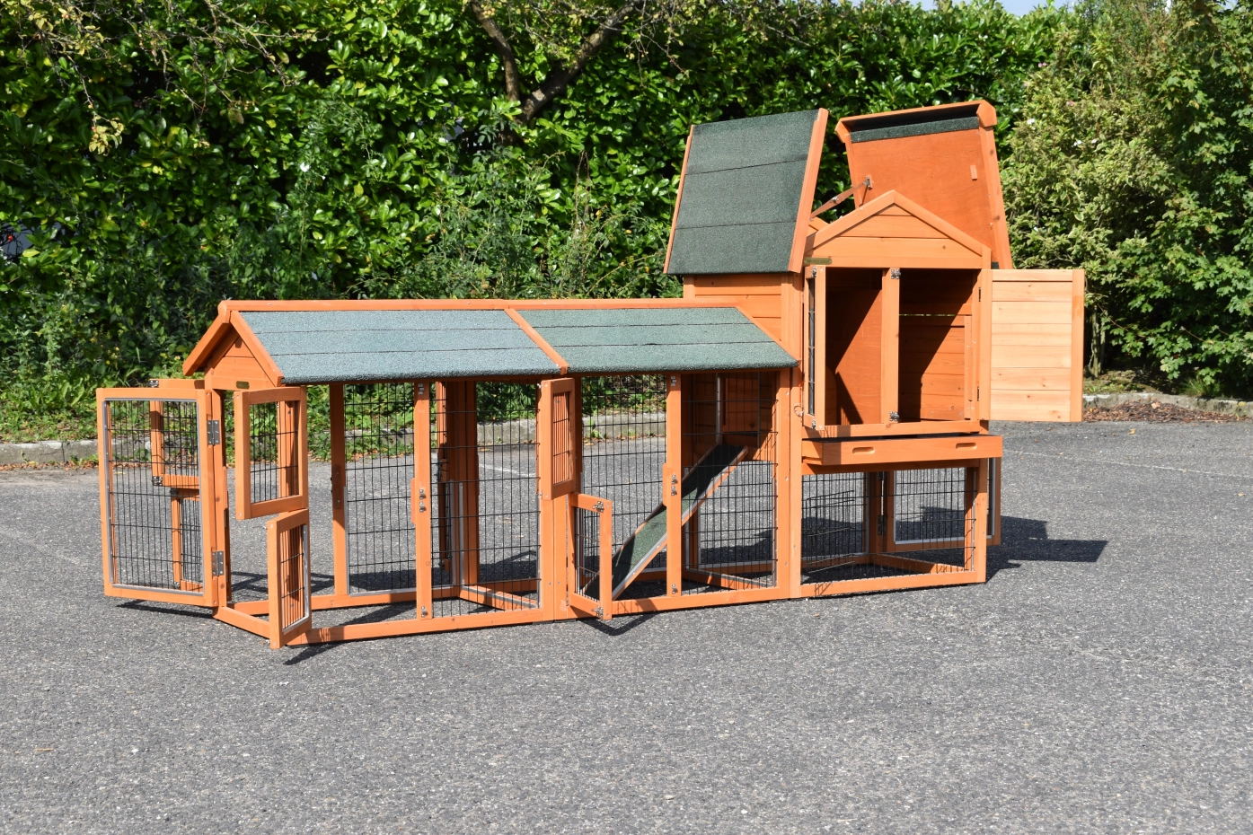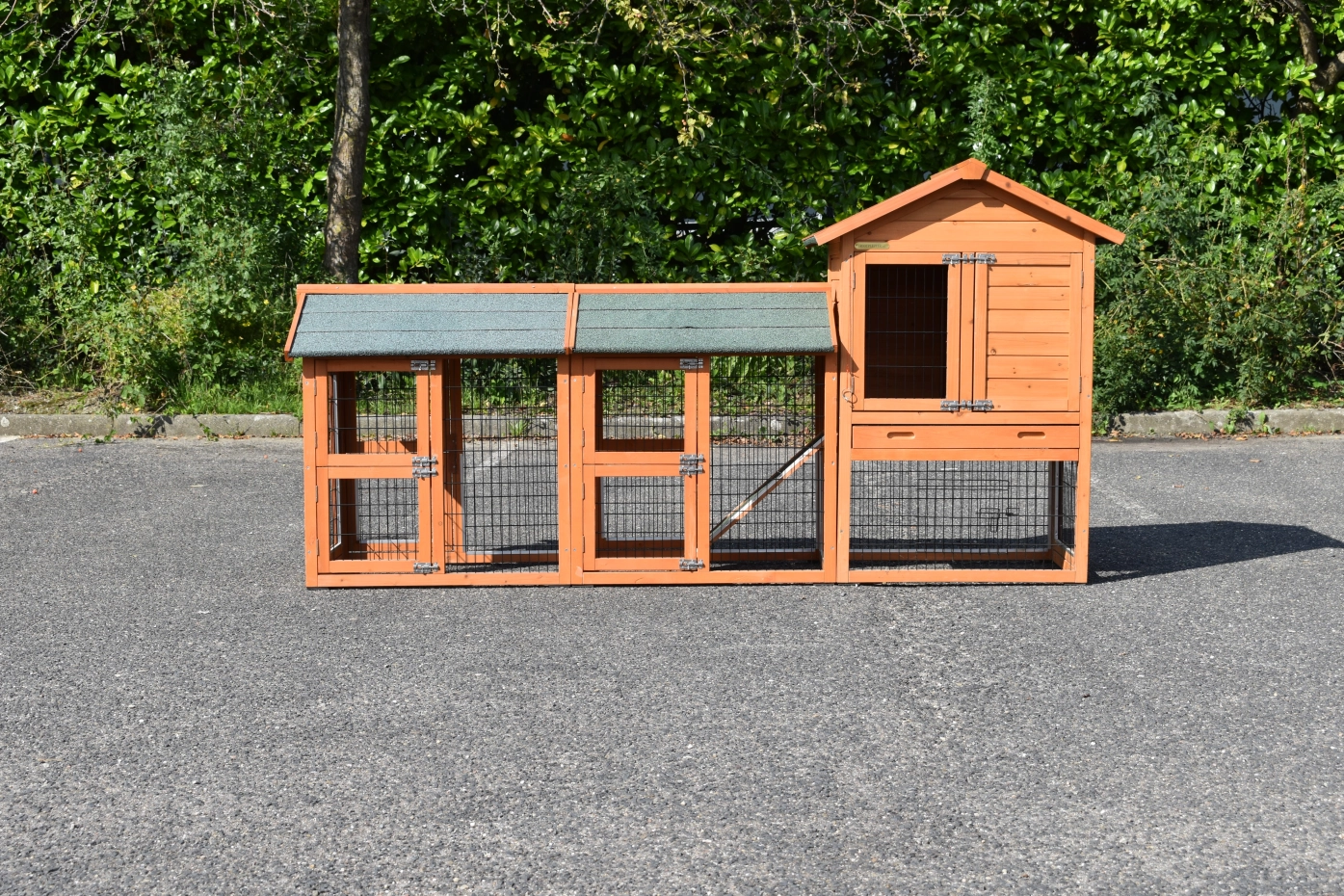 - The roof of this rabbit hutch is equipped with roofing felt