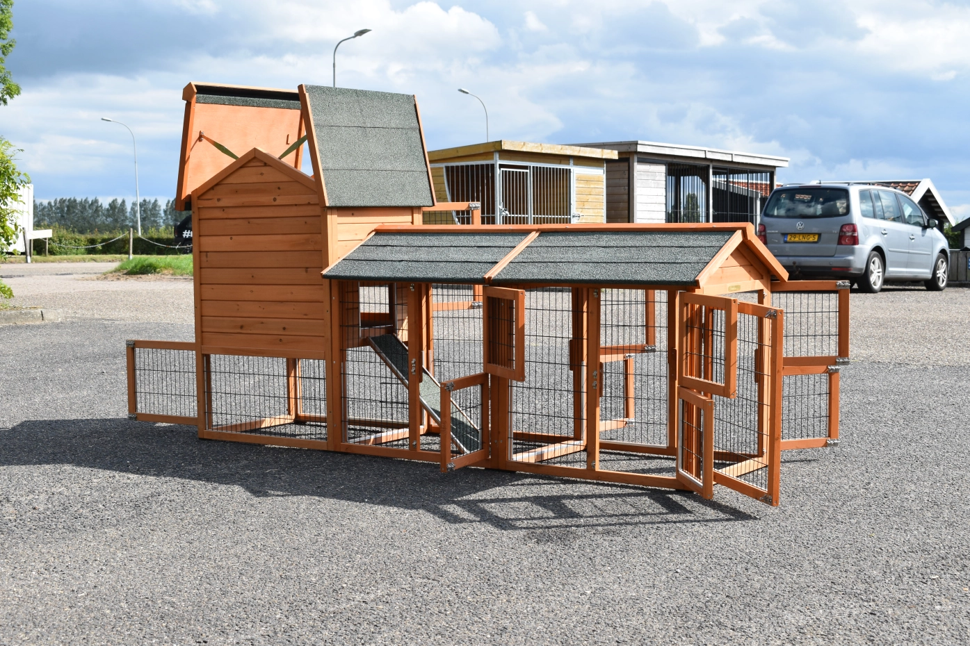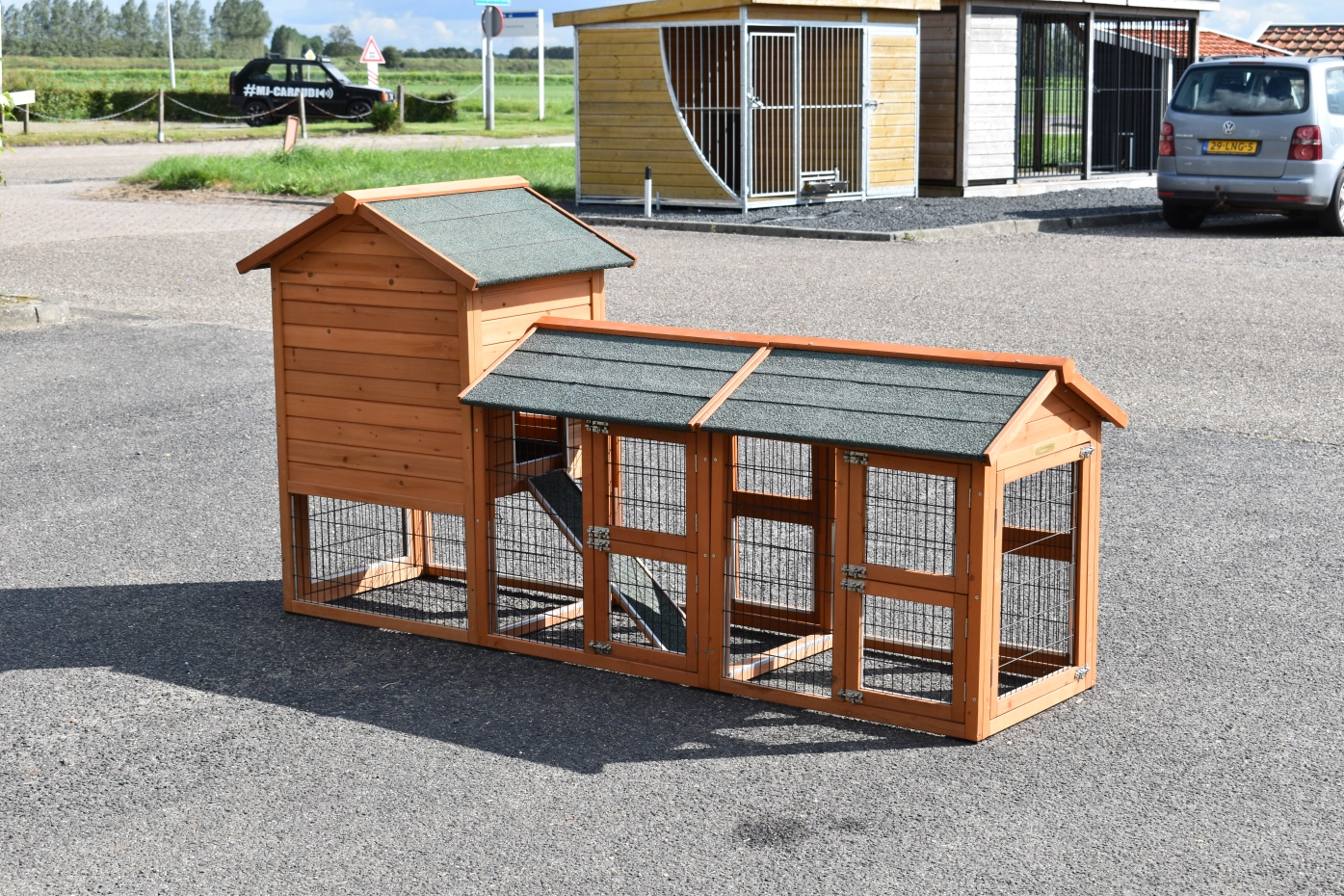 The wood, used for your pet house is a unique natural product which has been processed according to traditional methods in the country of origin, after careful selection. It is characteristic and unique in every way. This wood product has been manually processed. No single piece of wood is the same in shape, structure or color, so color shades are inevitable even within one piece of wood. Wind cracks, imperfections and the presence of large and small knots testify to their origin and years of growth. Bumps are usually manually updated with wood fill. Through use and through the influence of light, new pet houses will finally get a warmer color. Color differences in comparison with the show model or even among themselves are therefore usual. The pet house is stained in the colors as in the picture. You should do it once again to prevent mold and rot. You can easily order the stain together with the pet house.