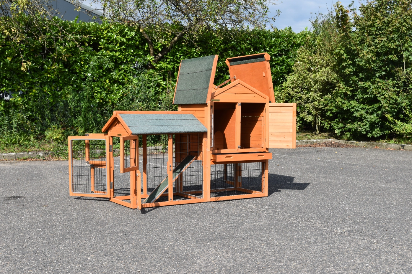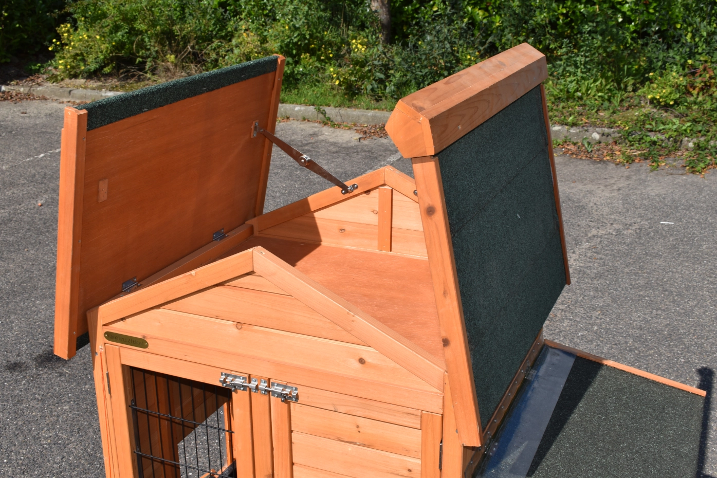 - The roof of this rabbit hutch is equipped with roofing felt