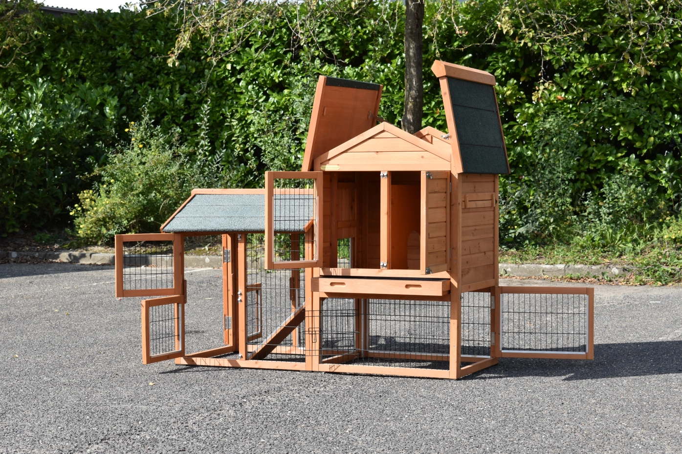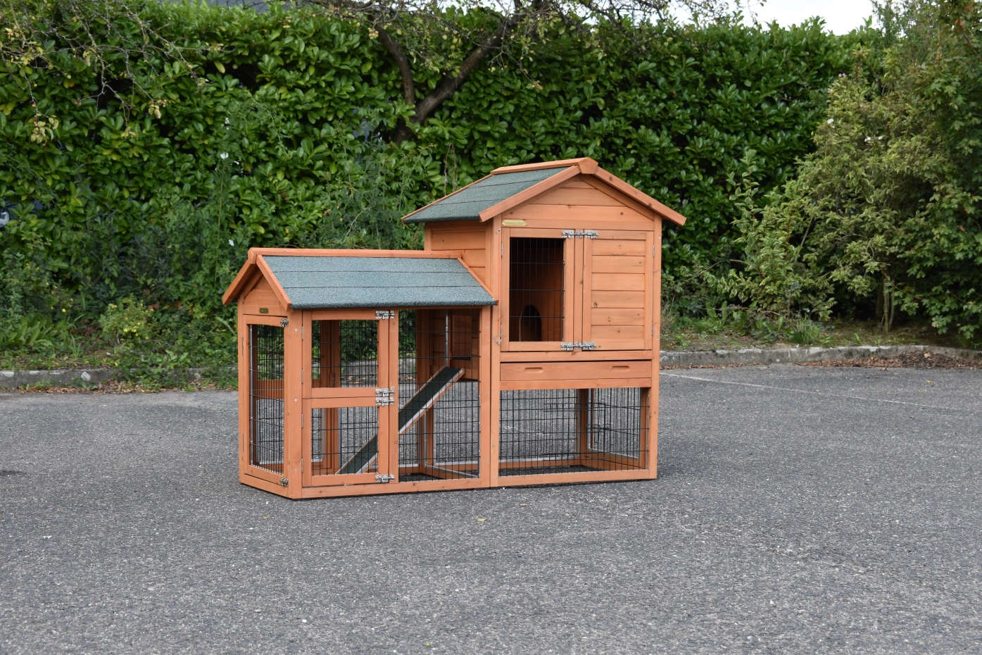 - The doors of this rabbit hutch are equiped with double locks