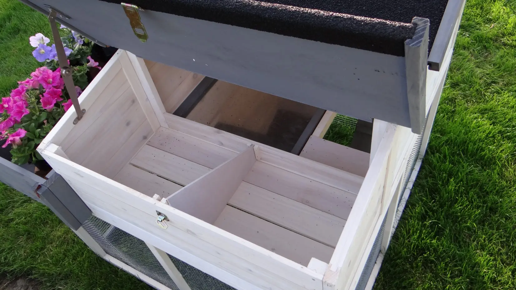 - The roof of this rabbit hutch is equipped with roofing felt