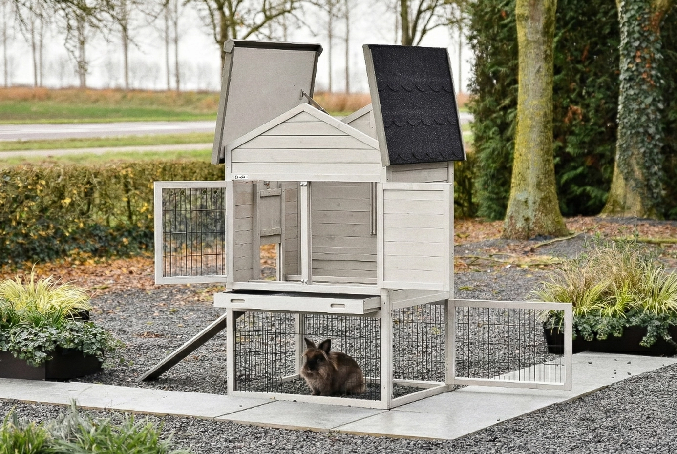 - The doors of this rabbit hutch are equiped with double locks
