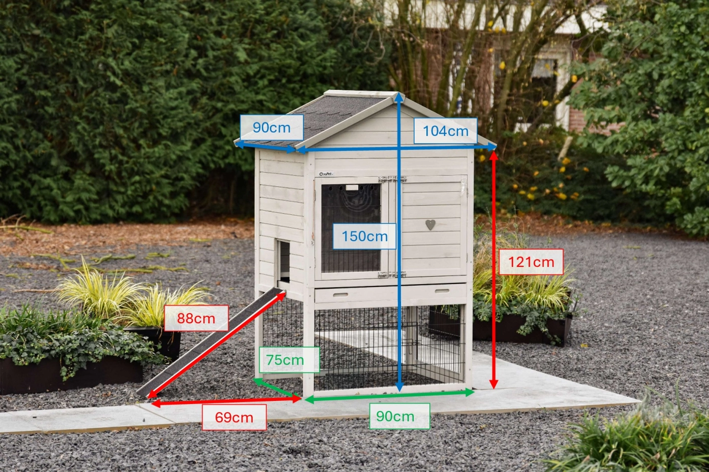 | Outer dimensions including roof (WxDxH) | 104x90x150cm |