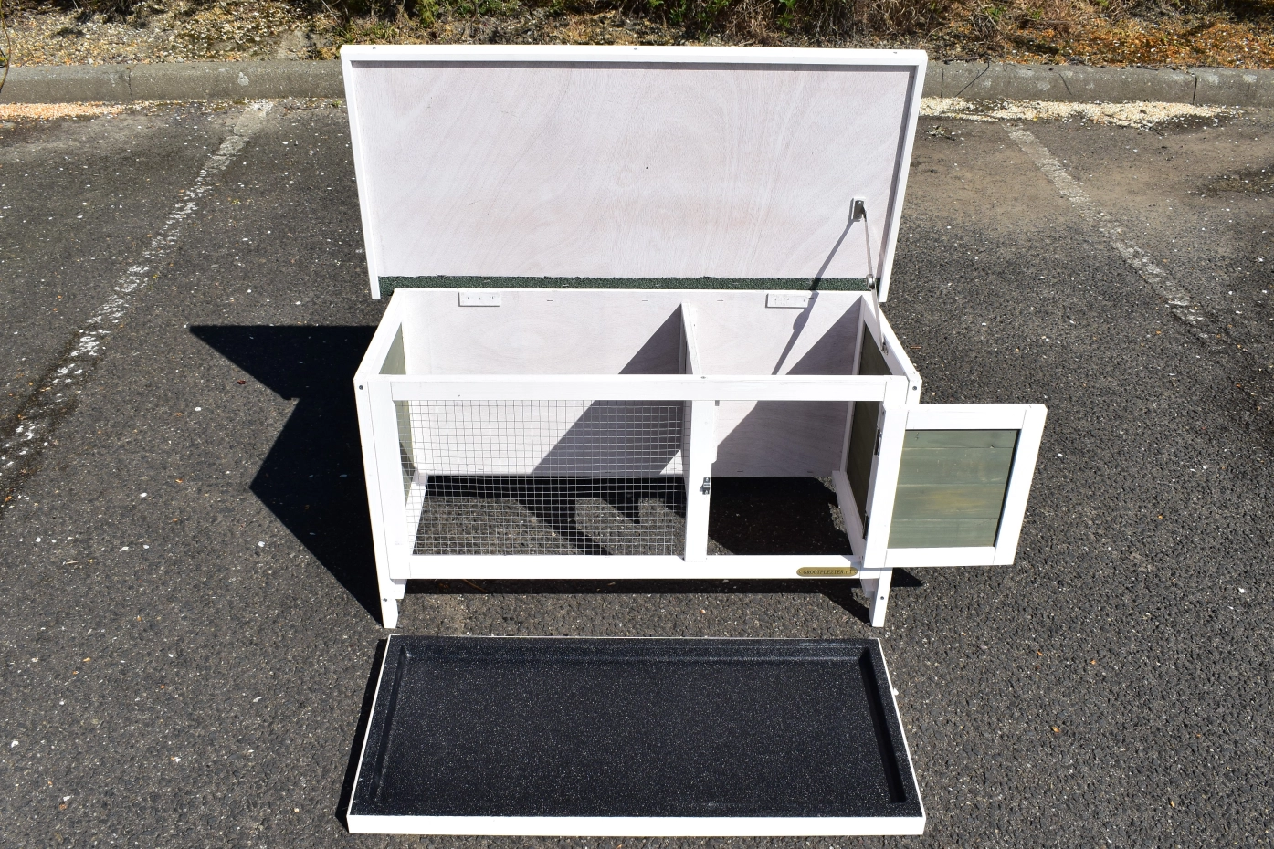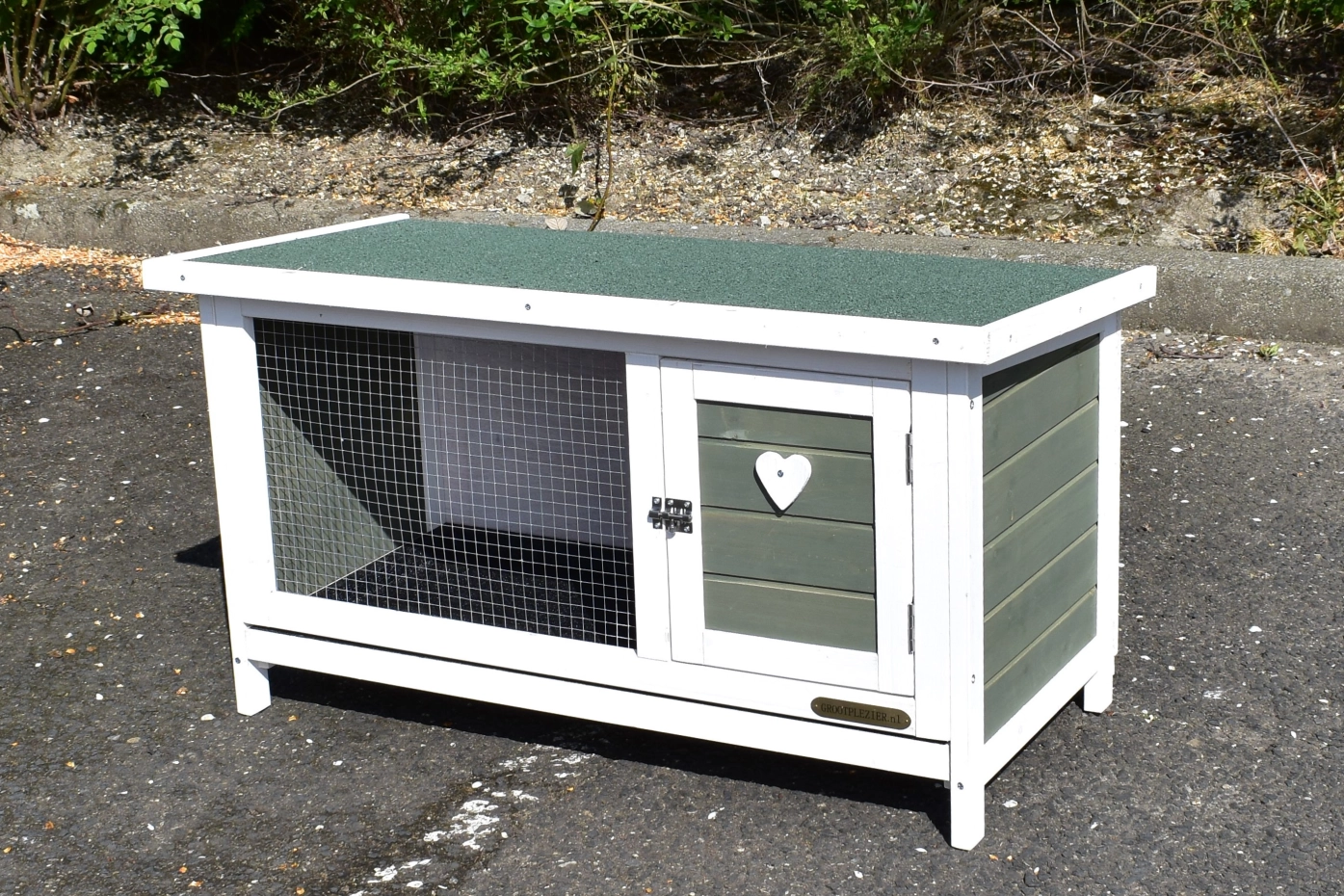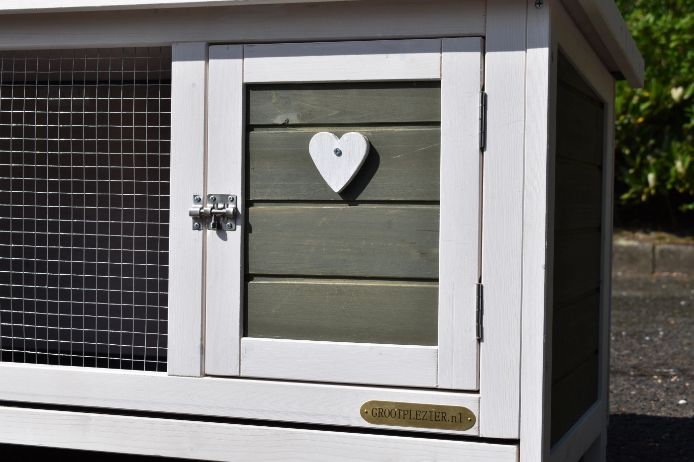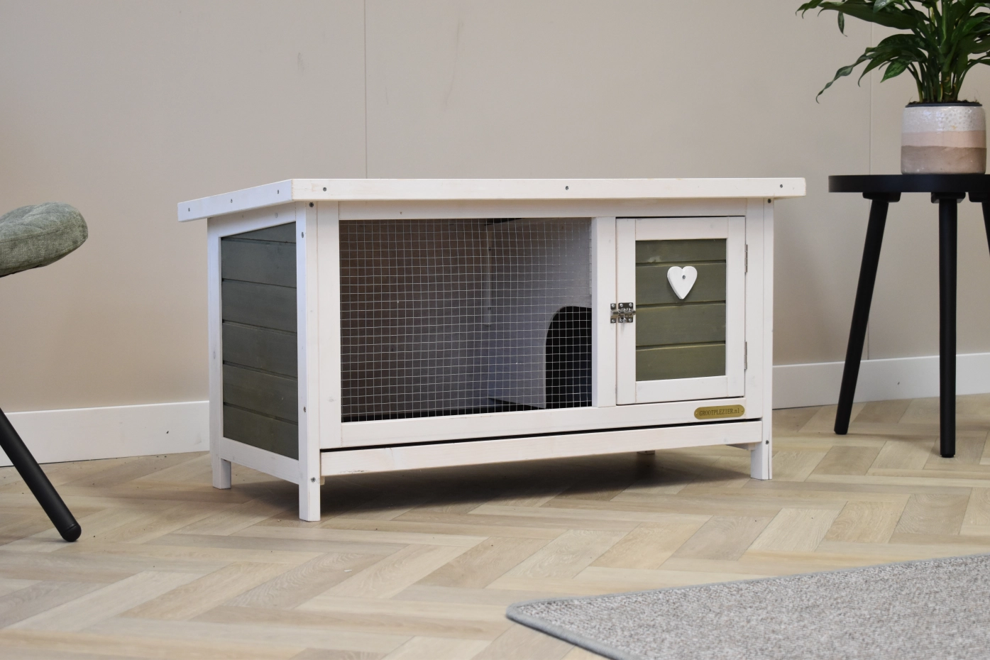 The little hutch Boemsy can be used for a little rabbit, but also for guinea pigs. This little hutch is provided with a sleeping compartment and a tray, so you can clean the hutch very easily. The hutch stands on little feet and is suitable for 1 little rabbit.