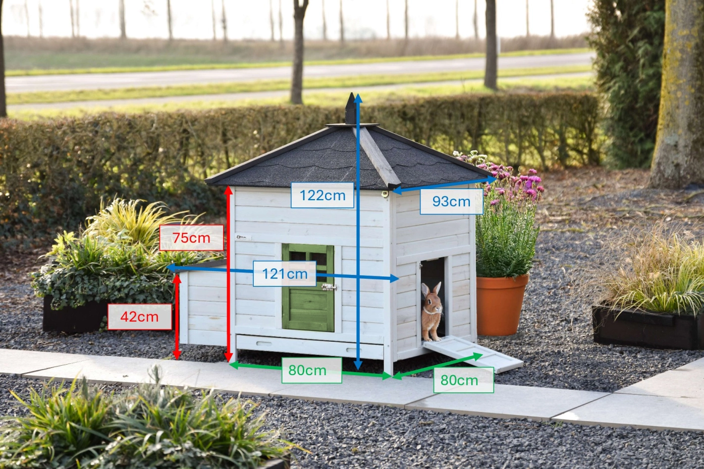 | Outer dimensions incl. roof and nest box (WxDxH) | 121x93x122cm |