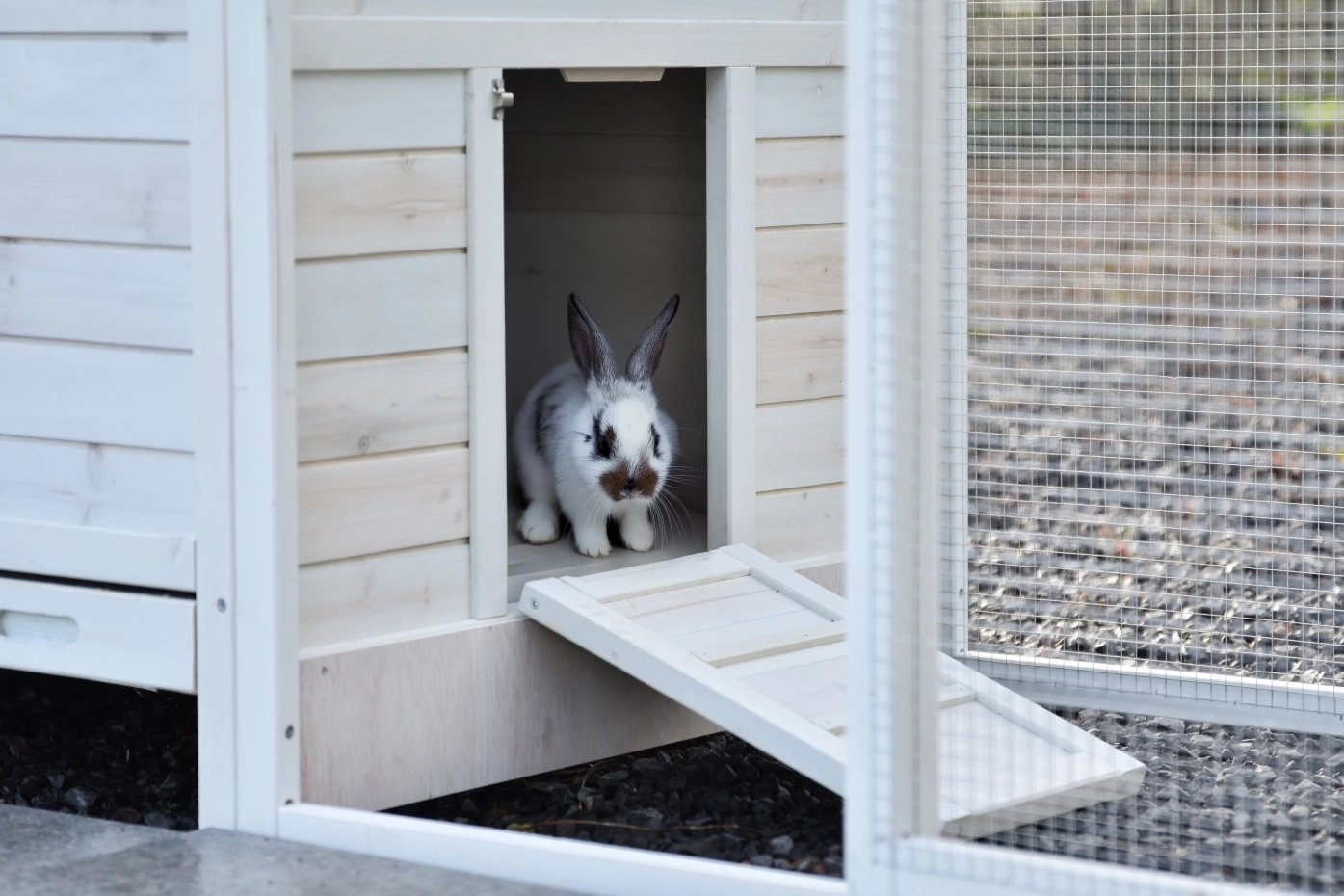 - This rabbit hutch is equipped with a nesting box