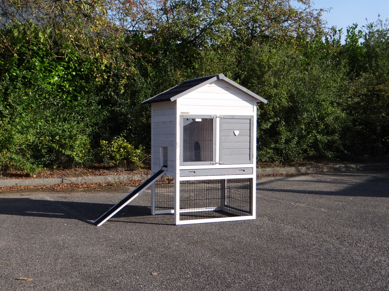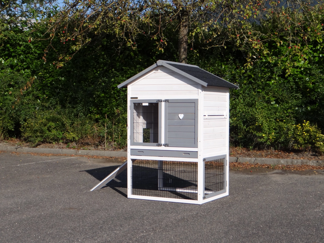 Rabbit hutch Prestige Medium is finished with aluminum edges on the most sensitive spots, preventing your rabbits from chewing on the wood. A fantastic shelter for your rabbits. This beautiful rabbit hutch is excellently detailed, with spacious doors and a generous sleeping area. For optimal protection, the rabbit hutch stands on rubber feet. This makes rabbit hutch Prestige Medium very practical. You can also easily assemble this rabbit hutch in reverse with slight modifications. Suitable for 1-3 rabbits.