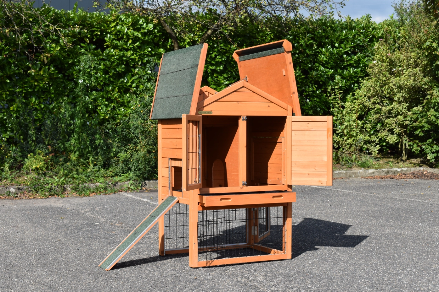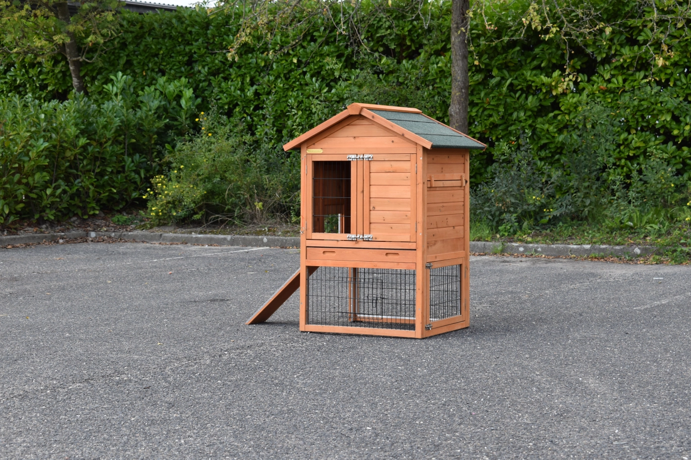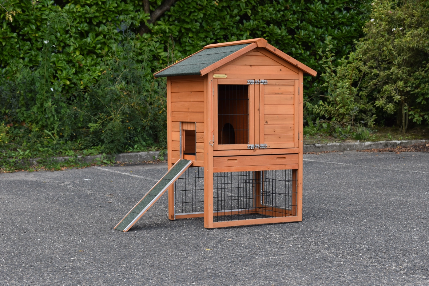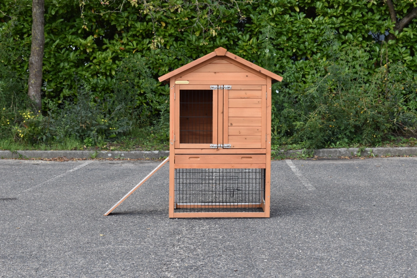 - The doors of this rabbit hutch are equiped with double locks