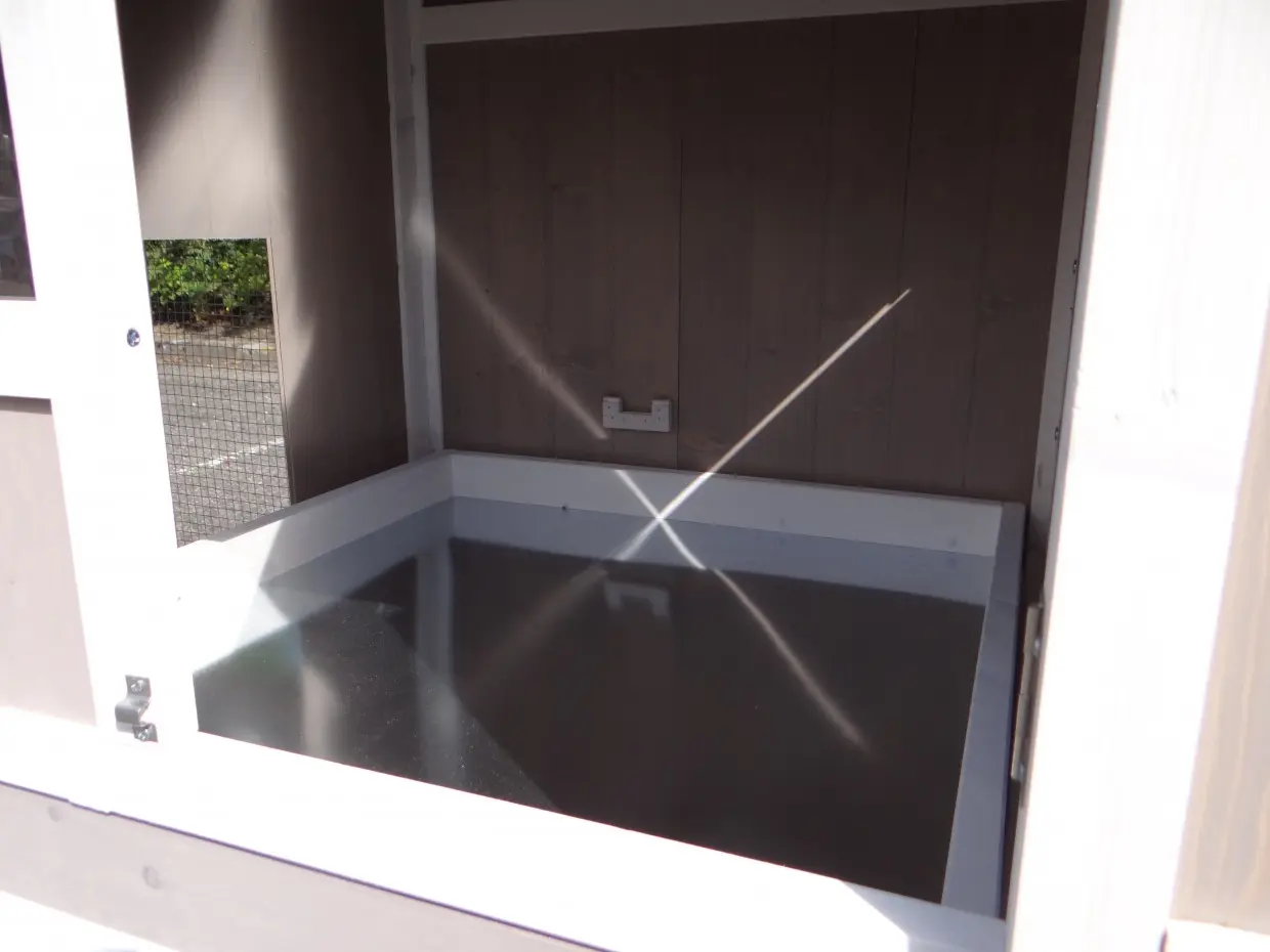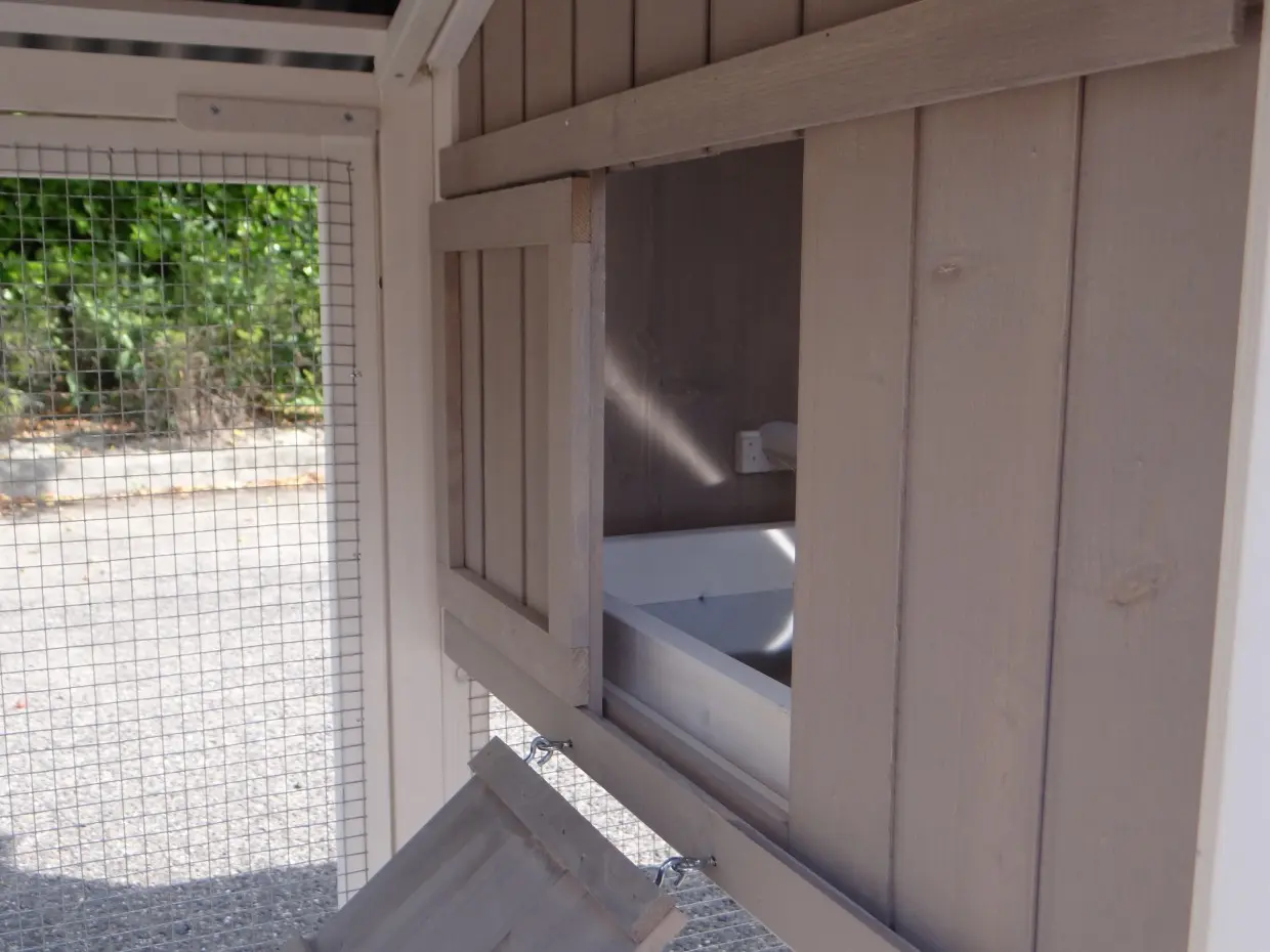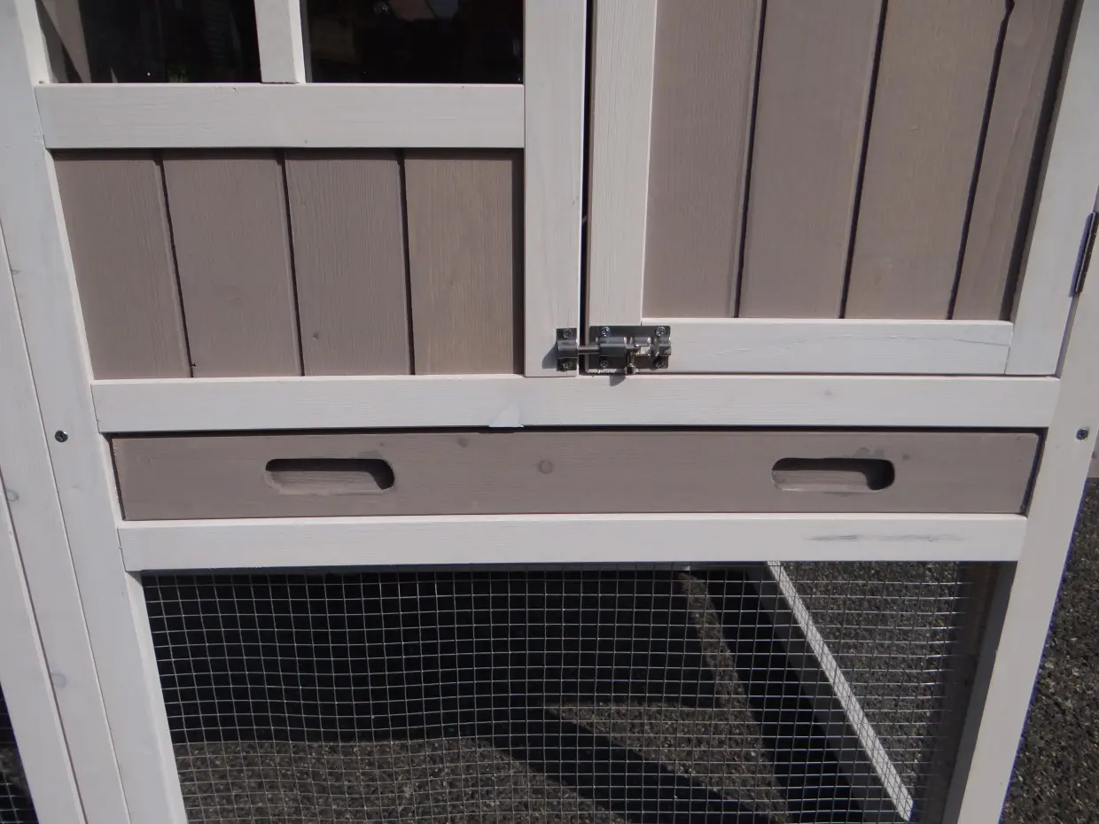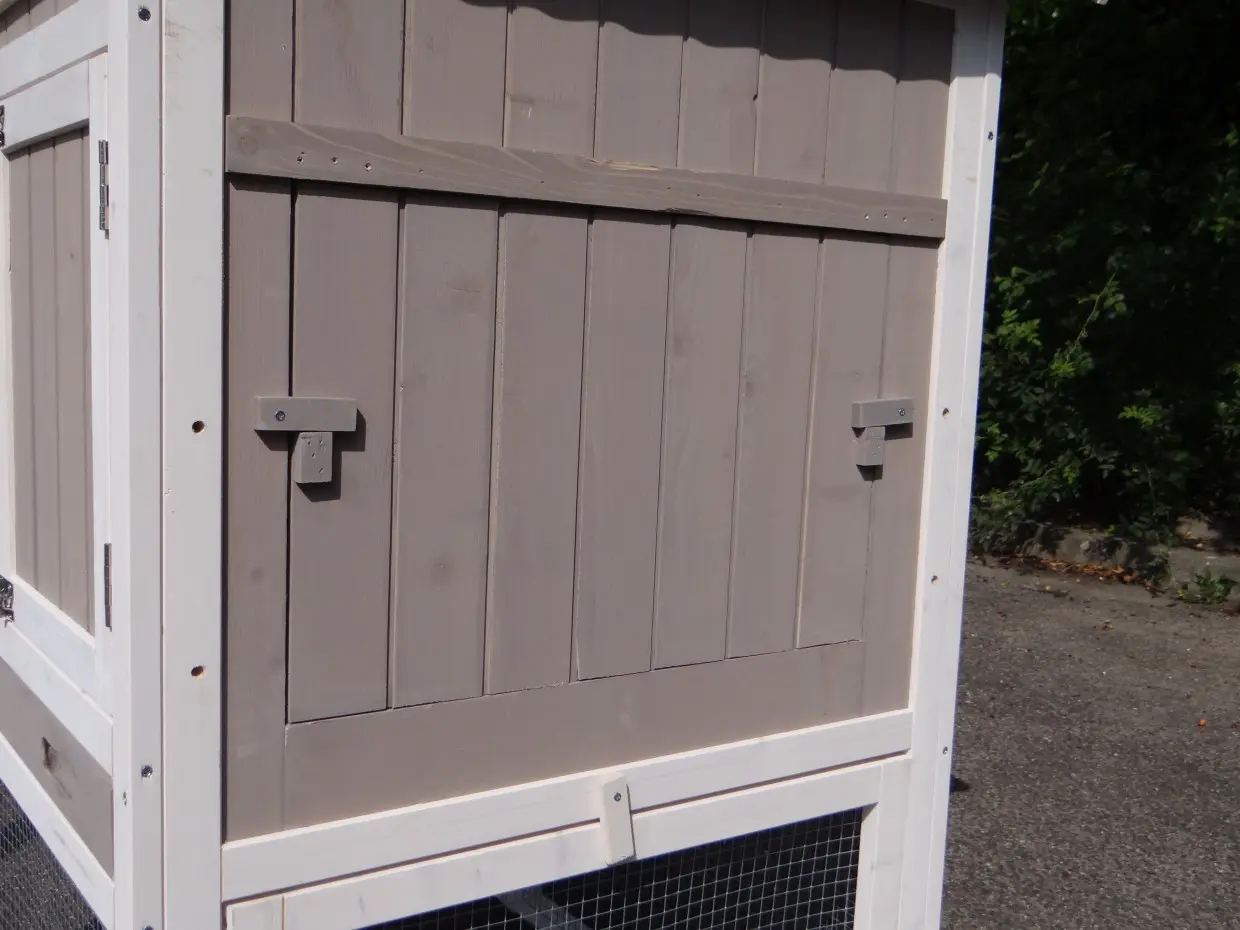 It is advisable to treat the hinges and locks periodically with silicone spray or lock spray to prevent rust and corrosion. If the pet house is not in a covered place, we advise you to anchor the house.