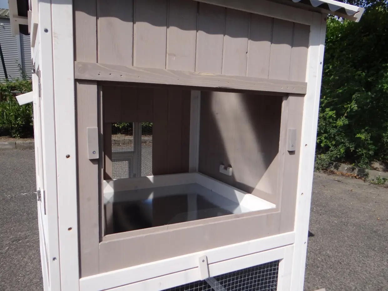 The wood, used for your pet house is a unique natural product which has been processed according to traditional methods in the country of origin, after careful selection. It is characteristic and unique in every way. This wood product has been manually processed. No single piece of wood is the same in shape, structure or color, so color shades are inevitable even within one piece of wood. Wind cracks, imperfections and the presence of large and small knots testify to their origin and years of growth. Bumps are usually manually updated with wood fill. Through use and through the influence of light, new pet houses will finally get a warmer color. Color differences in comparison with the show model or even among themselves are therefore usual. The pet house is stained in the colors as in the picture. You should do it once again to prevent mold and rot. You can easily order the stain together with the pet house.