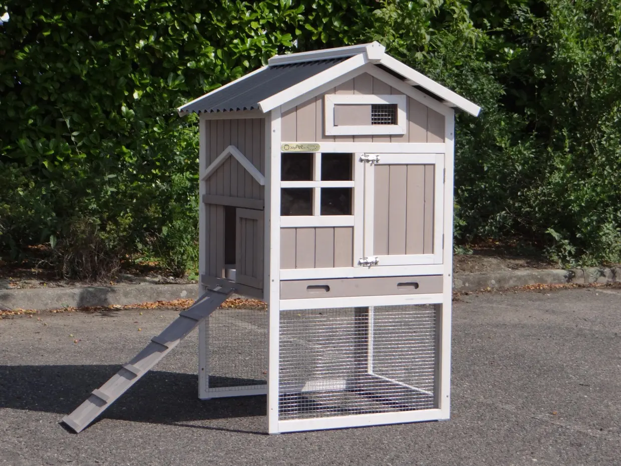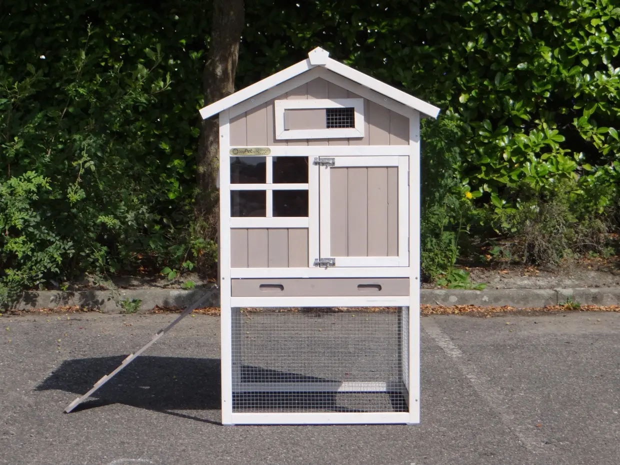 Rabbit hutch Jason is a small hutch with a large lockable sleeping area. The sleeping compartment also has a ventilation opening that you can open and close. The hutch has many spacious openings, allowing you easy access to the rabbits. Additionally, the hutch has plastic feet. It can accommodate 2-4 rabbits.