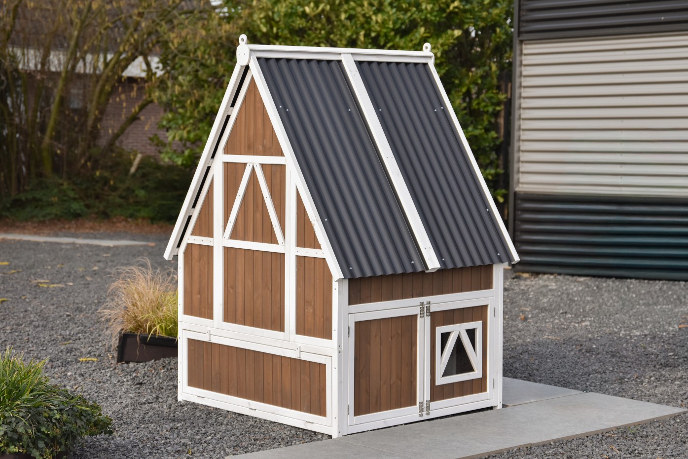 Rabbit hutch Pip is a spacious rabbit hutch with a classic pitched roof, suitable for keeping several rabbits. Thanks to its generous dimensions, this hutch is also highly suitable for Flemish Giants. The open ridge provides extra height and a pleasant living environment, giving larger breeds plenty of room to move.