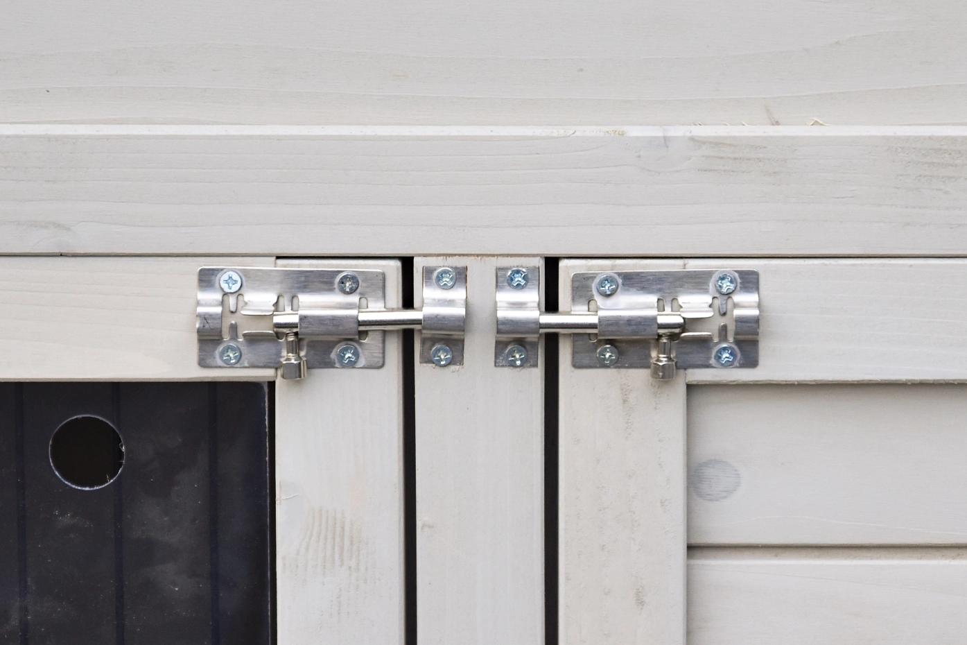 It is advisable to treat the hinges and locks periodically with silicone spray or lock spray to prevent rust and corrosion. If the pet house is not in a covered place, we advise you to anchor the house.
