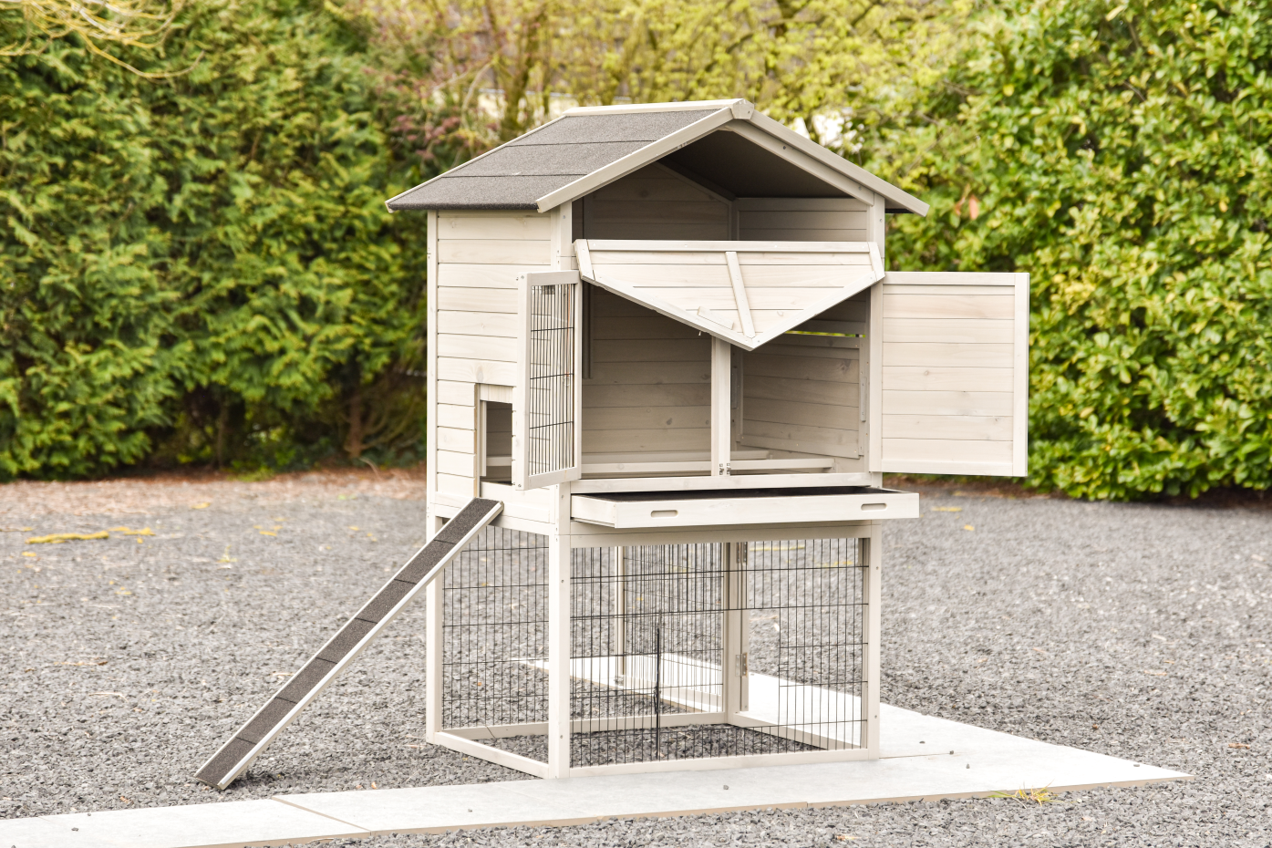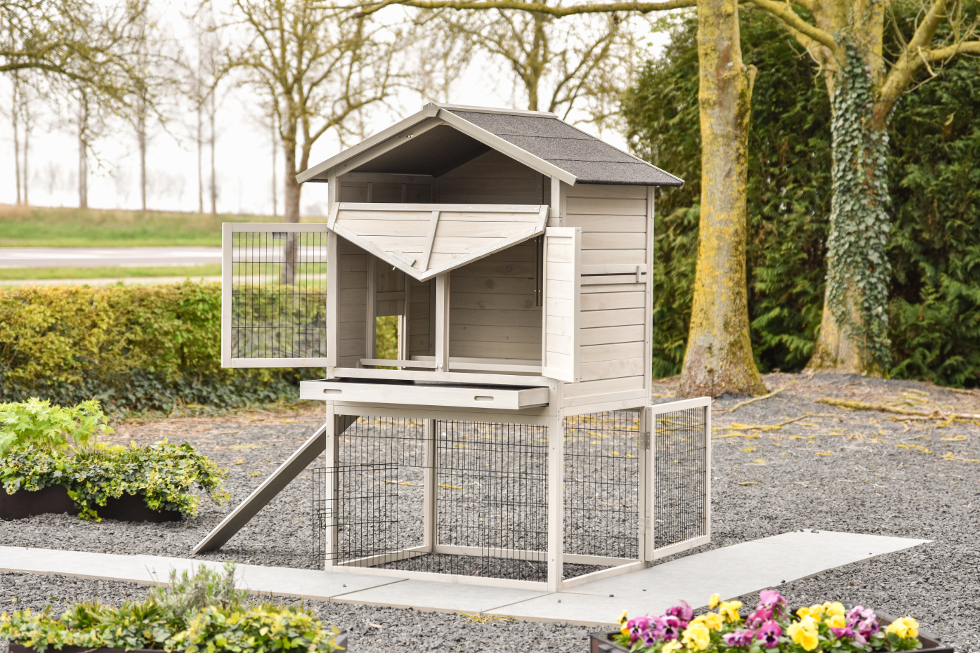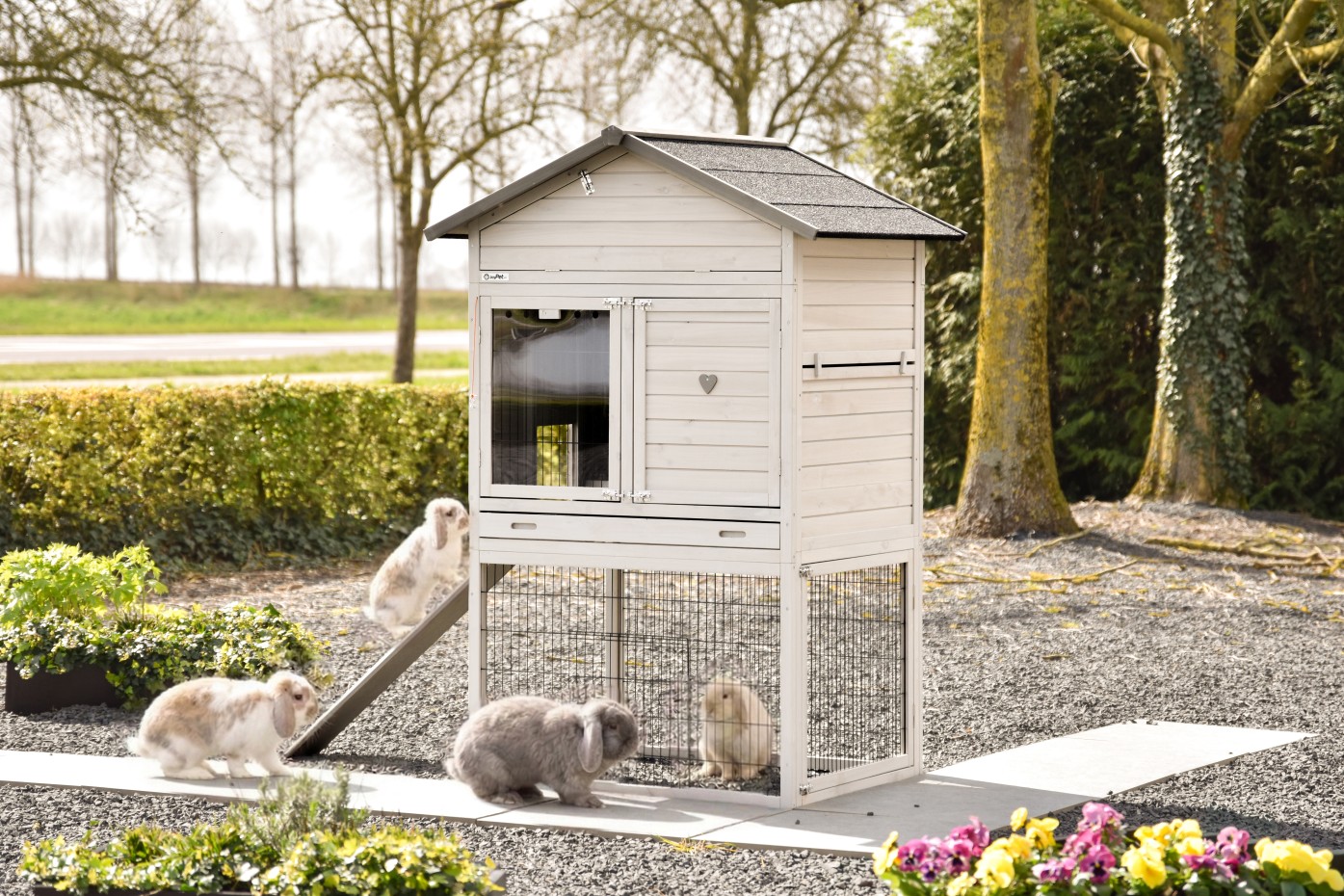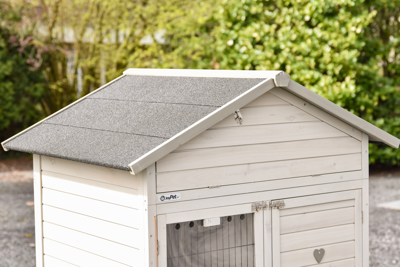 A spacious and practical rabbit hutch in which your rabbits will immediately feel at home The generous night shelter provides comfort and rest, while the large doors make maintenance easy This compact night shelter is ideal for placement in a large run or in a meadow, allowing your rabbits plenty of freedom to move Thanks to the rubber feet, the hutch is protected against rising damp Moreover, the rabbit hutch can easily be combined with existing runs for extra space, allowing you to expand it endlessly