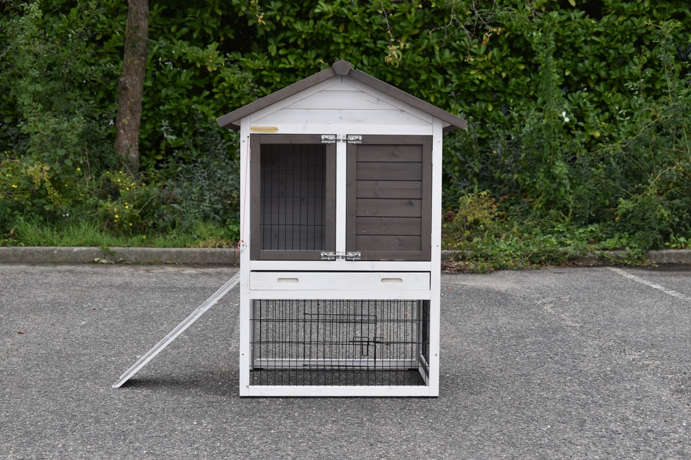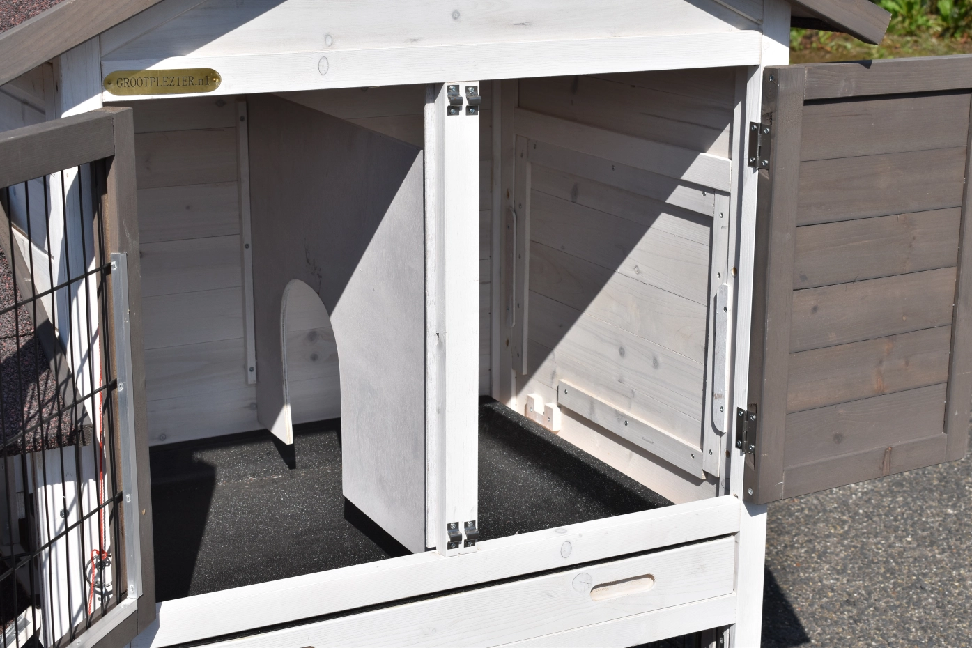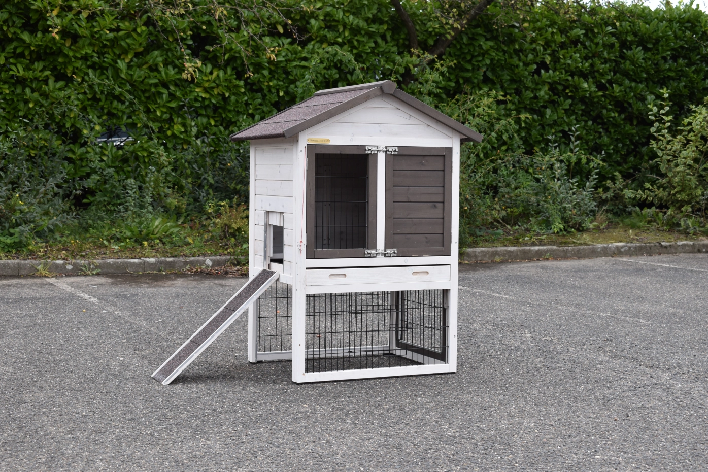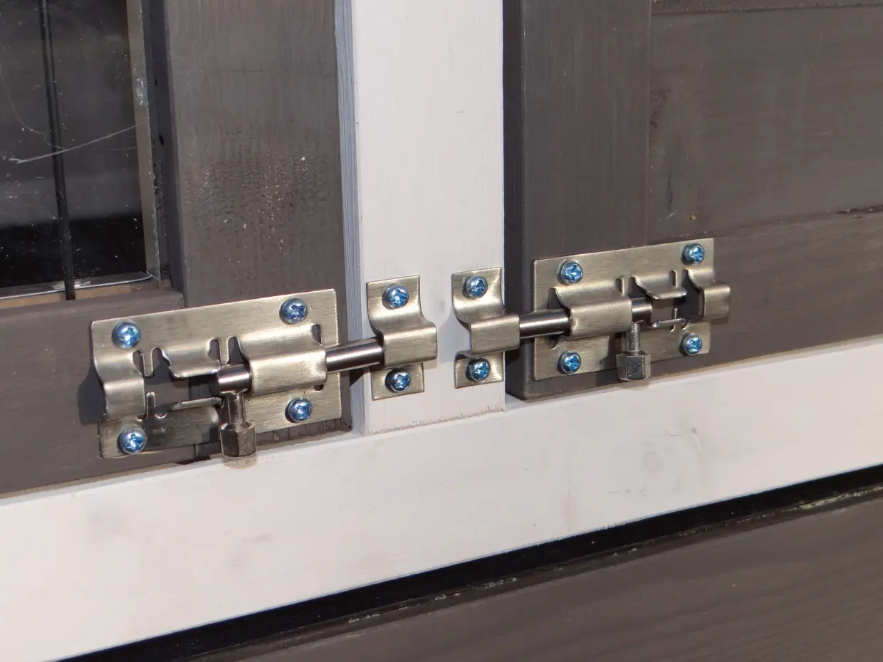 - The doors of this rabbit hutch are equiped with double locks